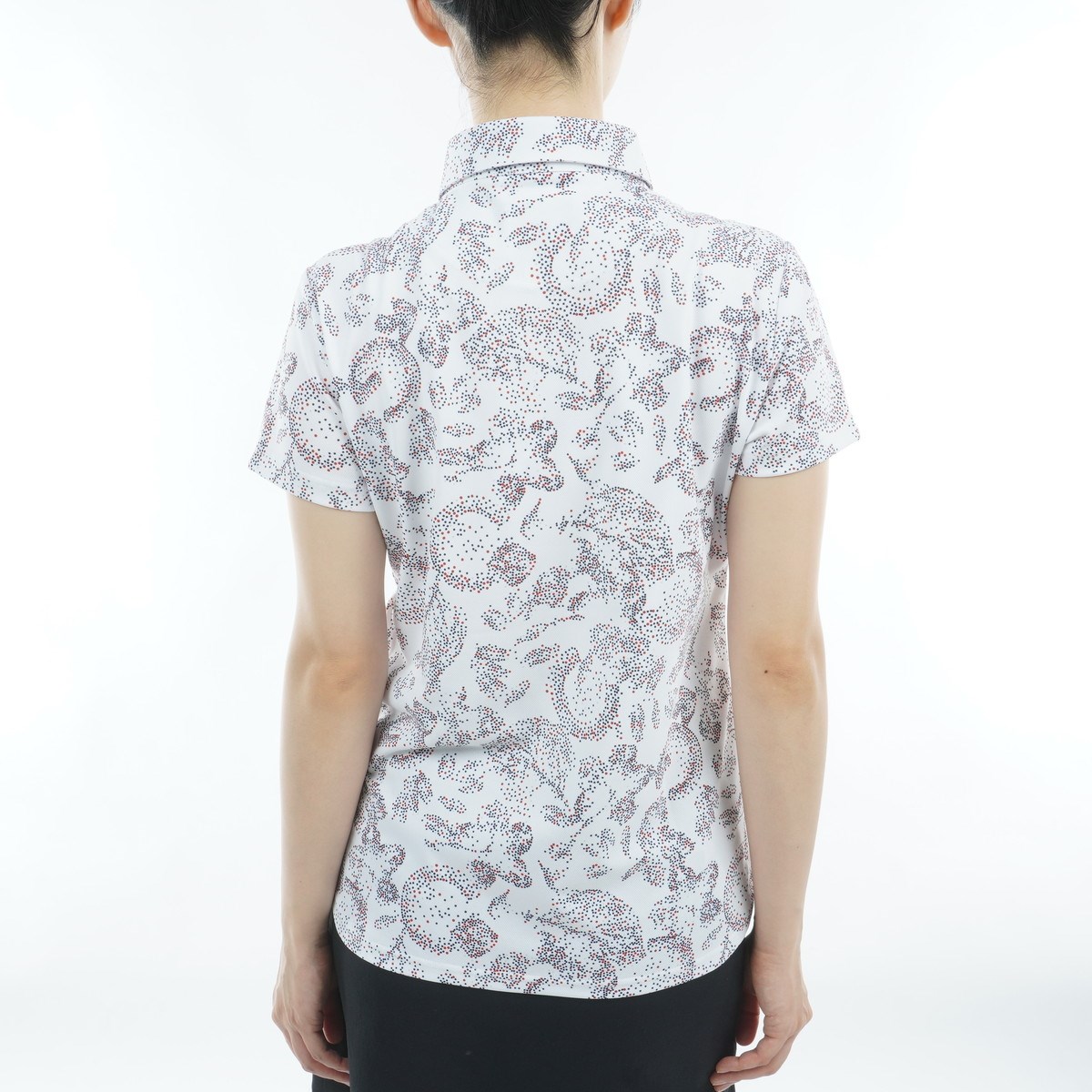 ドットでロゴやボタニカルを表現した華やかなプリント半袖ポロシャツです。