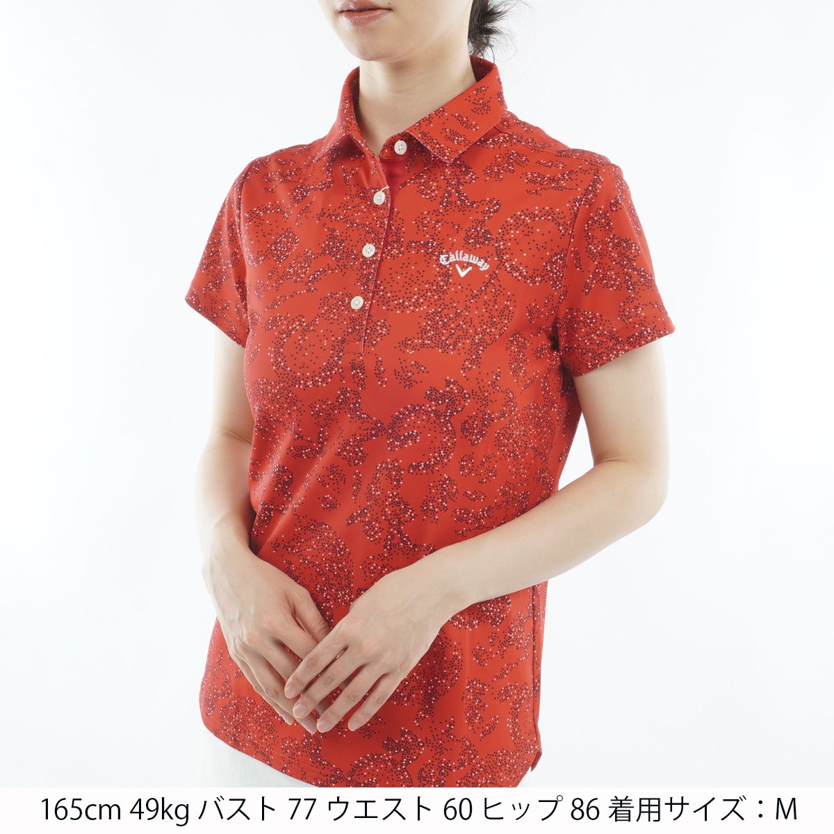 キャロウェイゴルフ Callaway Golf ボタニカルプリント 鹿の子半袖ポロシャツ S レッド 1100 レディス