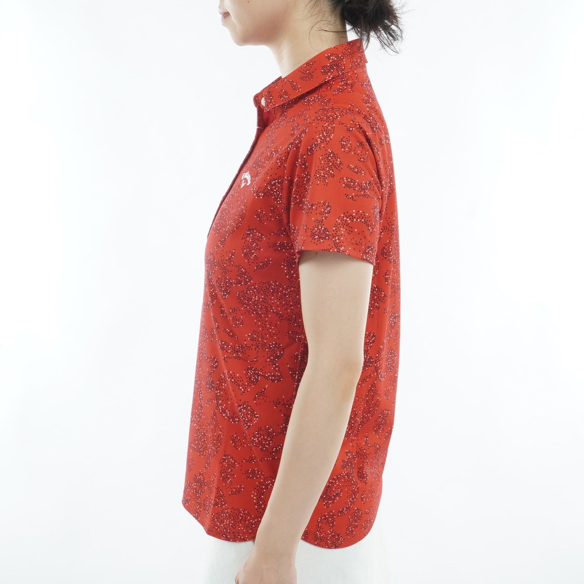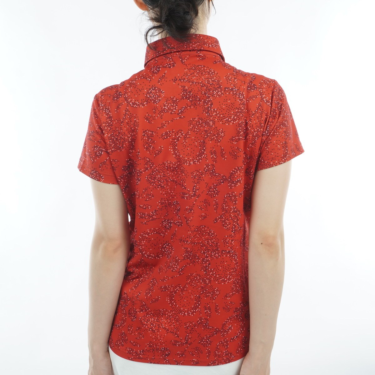 ドットでロゴやボタニカルを表現した華やかなプリント半袖ポロシャツです。