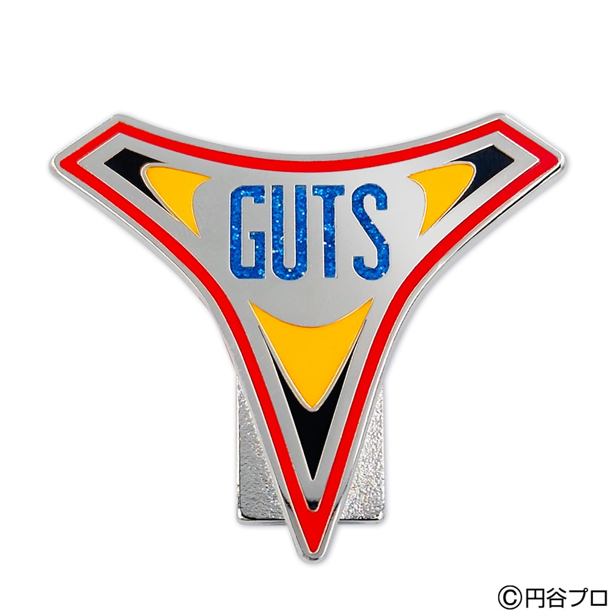 台座は特捜チーム GUTSのエンブレム、マーカーはティガの登場シーンを再現。
