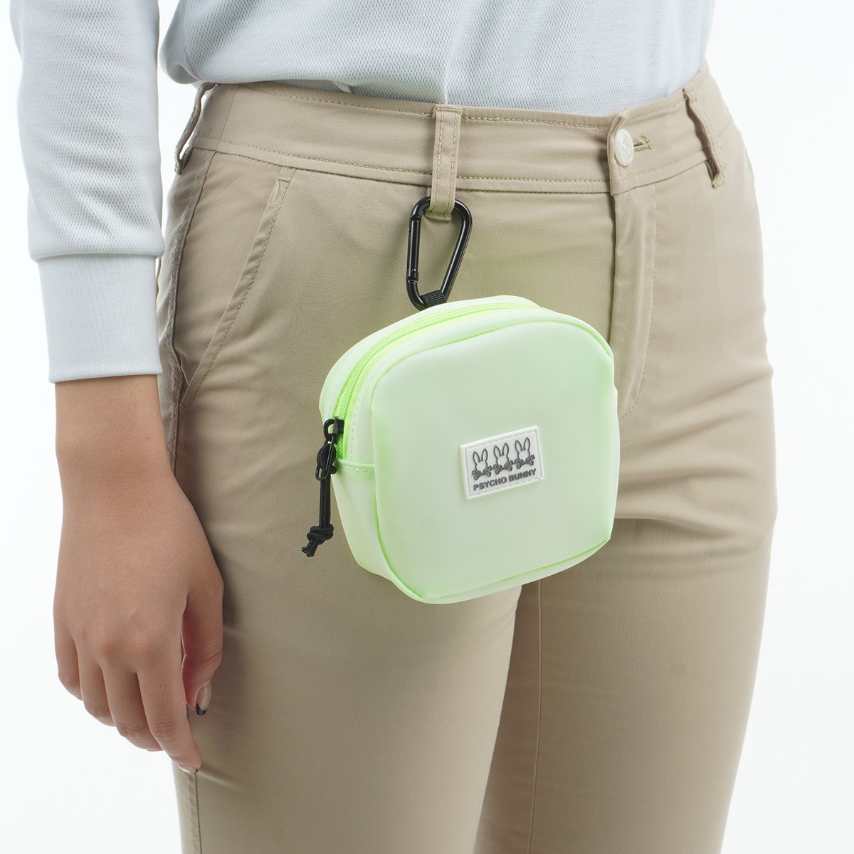 中身が透けてわかりやすく、キャディバッグなどに付けられるカラビナも付属。