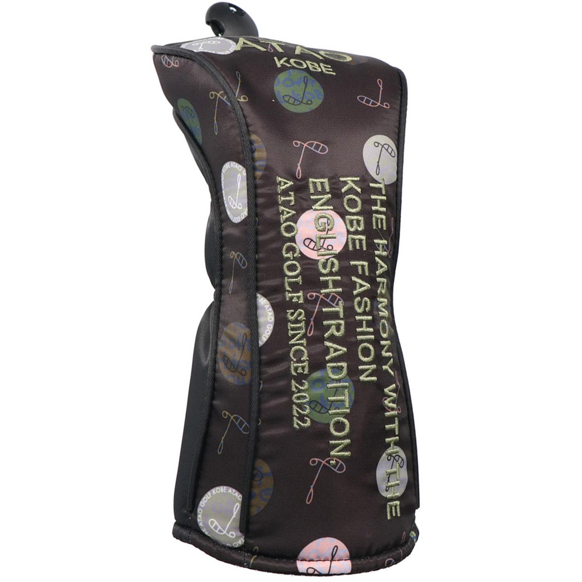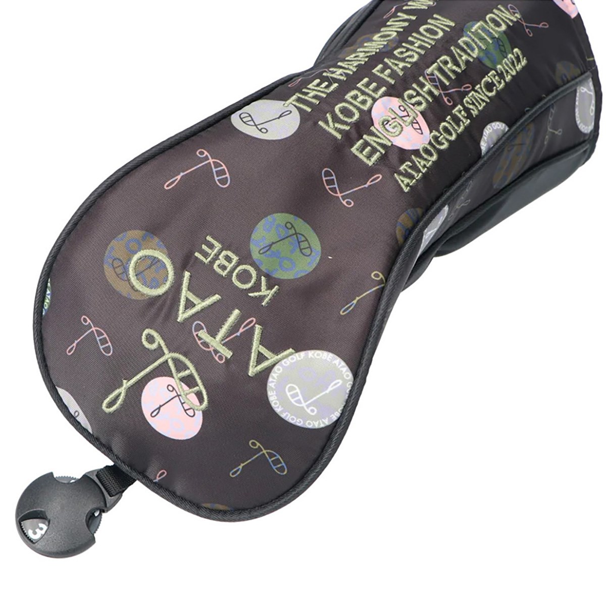 アタオGOLFのために開発された撥水機能付きオリジナルテキスタイルに、シルキーなブランドロゴがポイントの「ハーモニードット フェアウェイウッドカバー」。