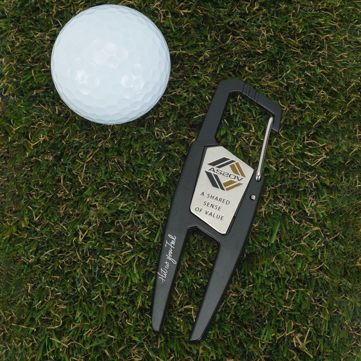 アッソブゴルフ AS2OV GOLF マーカー付きカラビナグリーンフォーク ブラック 10