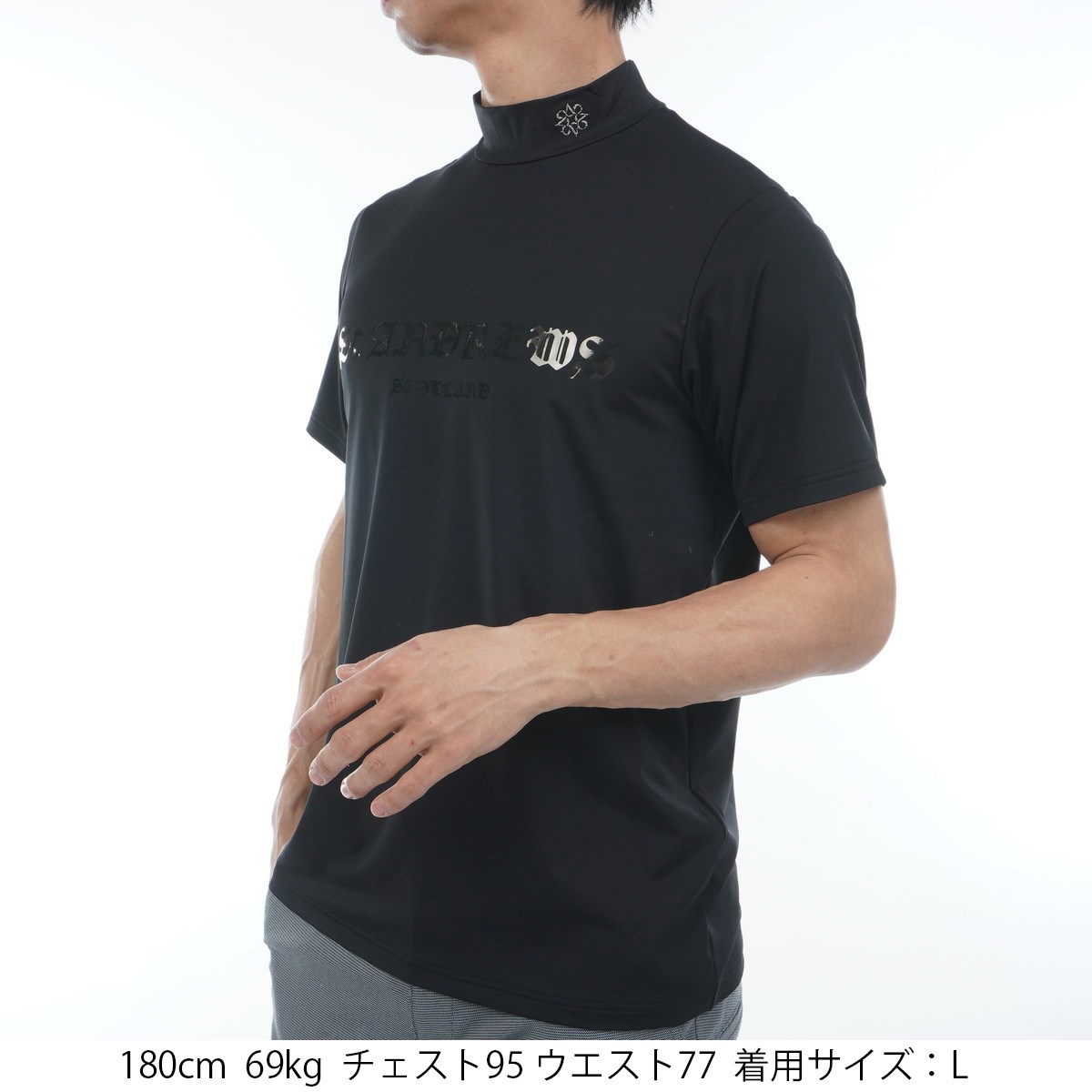 セント・アンドリュース St ANDREWS ストレッチ ベア天 ハイネック半袖シャツ M ブラック 010