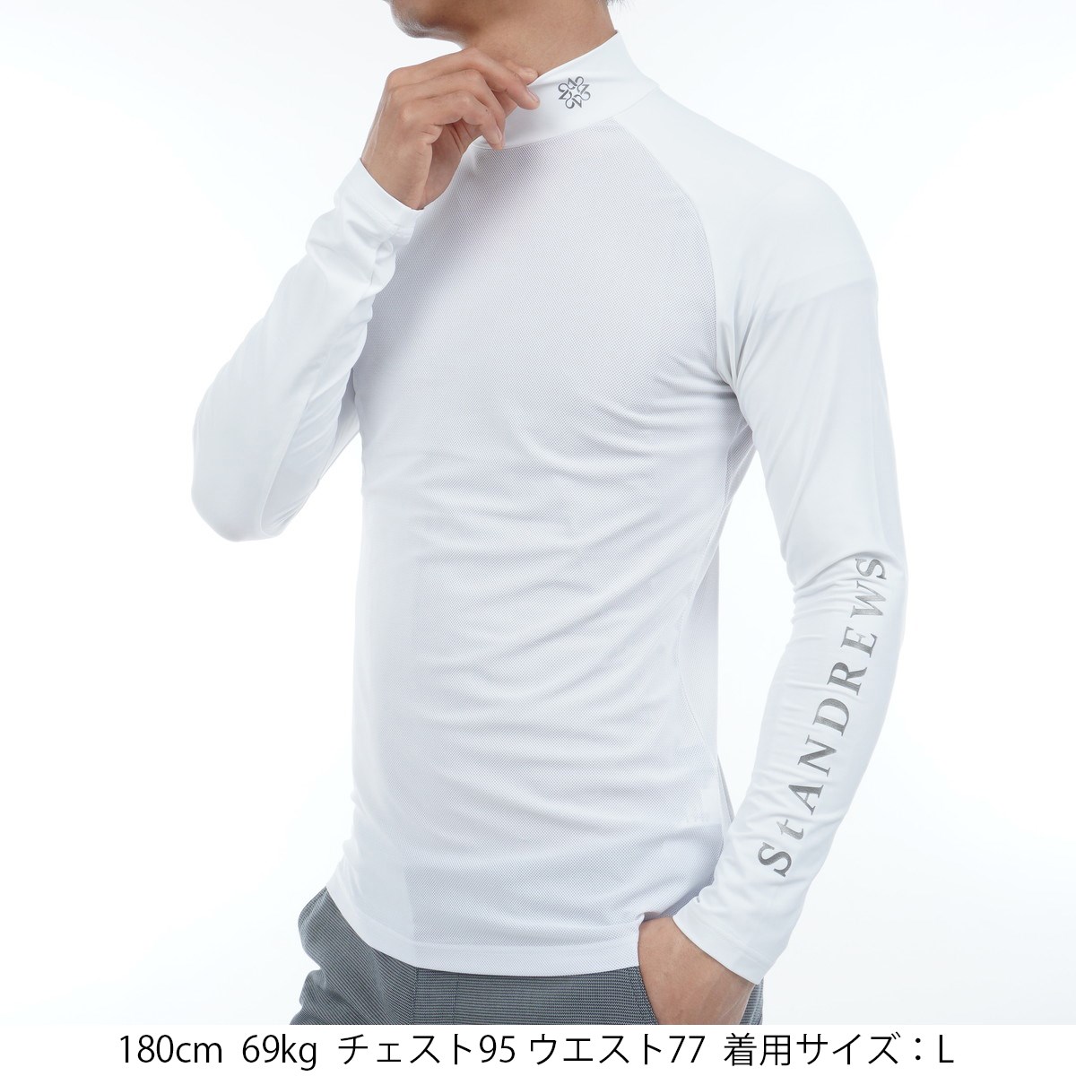 セント・アンドリュース St ANDREWS ツインコットUV×SUNPROFITメッシュ ハイネック長袖インナーシャツ M ホワイト 030