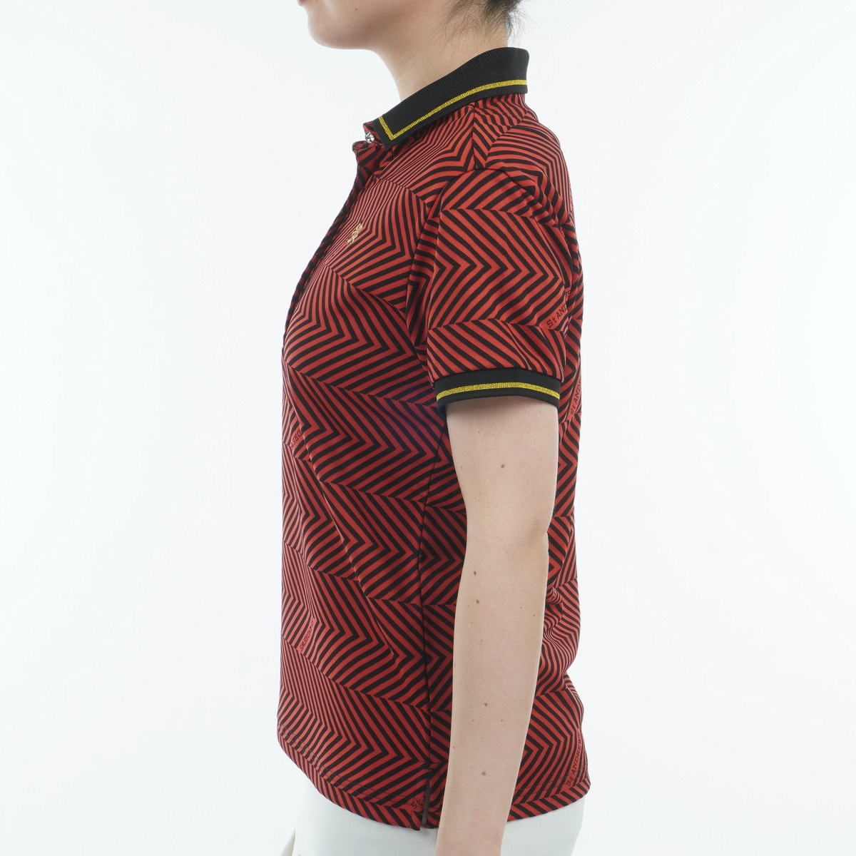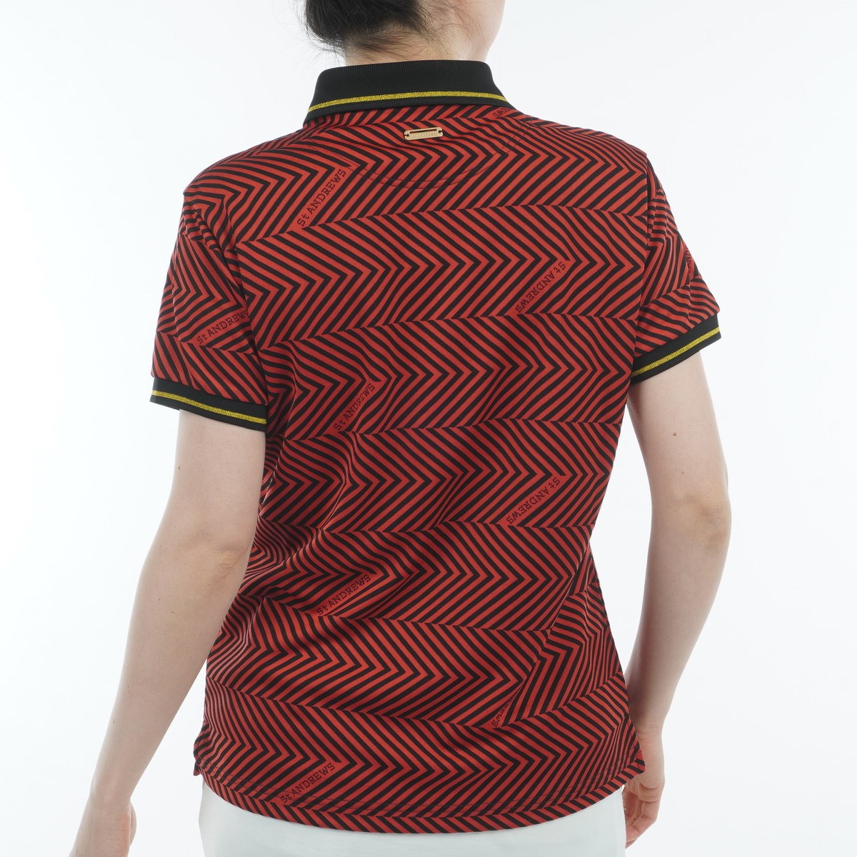 セント・アンドリュース St ANDREWS ジグザグ柄 ジャカード半袖ポロシャツ L レッド 100 レディス
