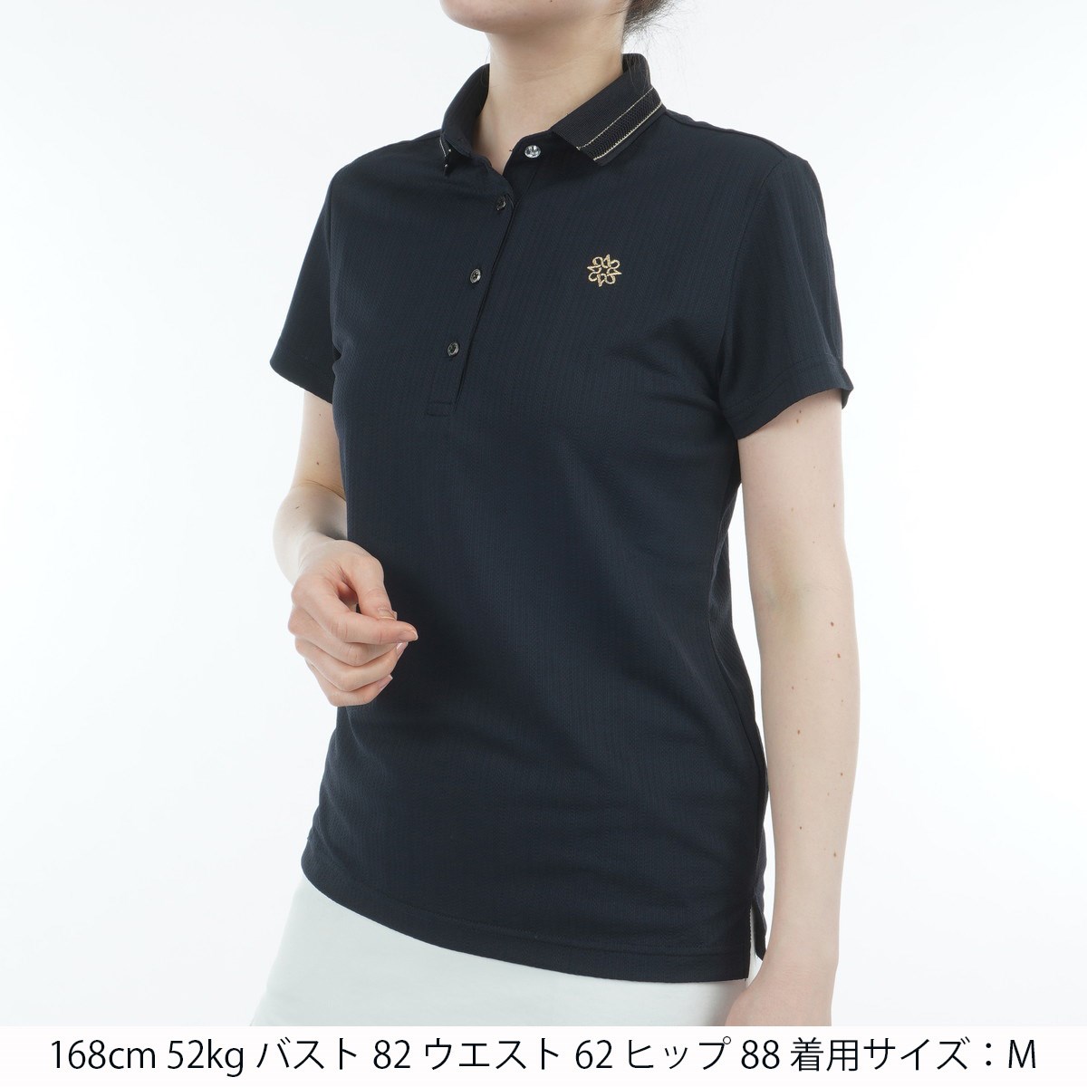 セント・アンドリュース St ANDREWS ハイゲージストライプ ストレッチ半袖ポロシャツ L ネイビー 120 レディス