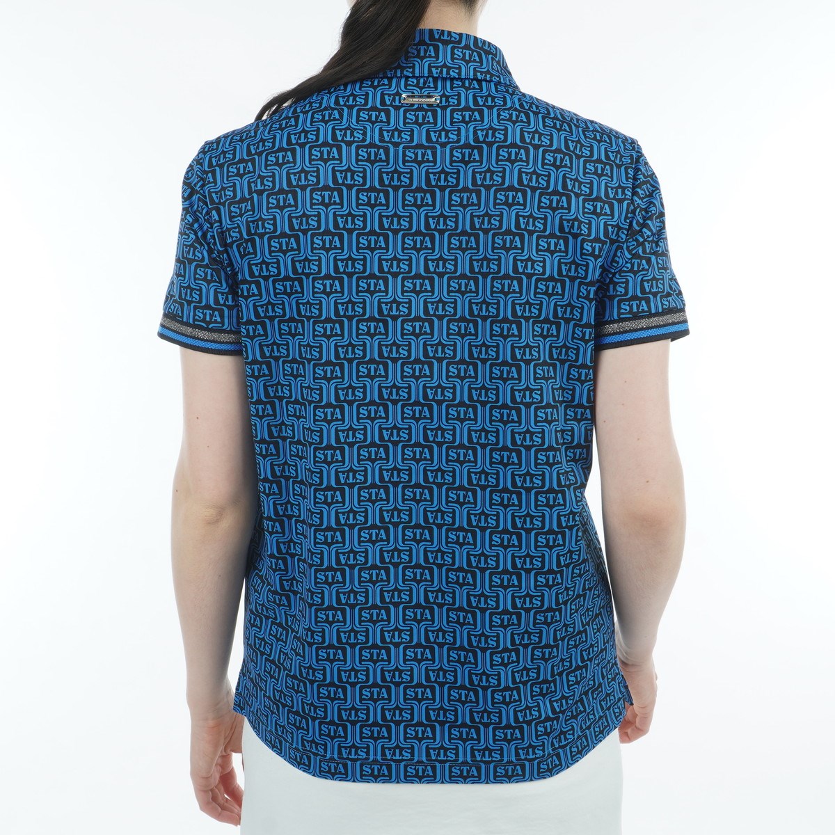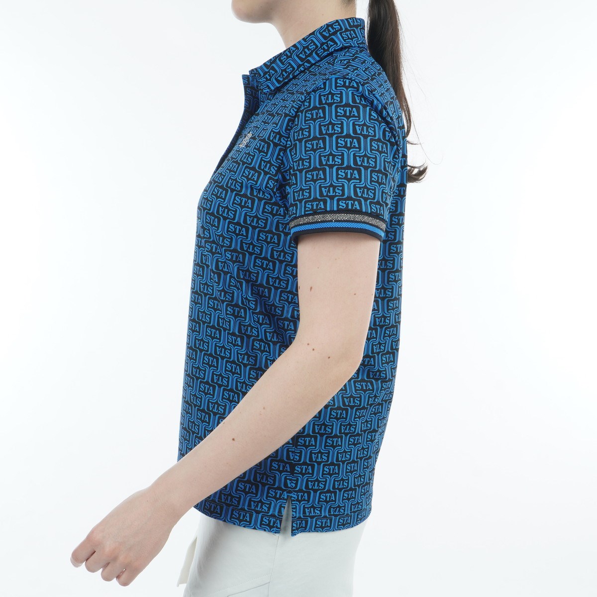 セント・アンドリュース St ANDREWS ドビーメッシュ ニューウェーブ柄半袖ポロシャツ S ブルー 110 レディス