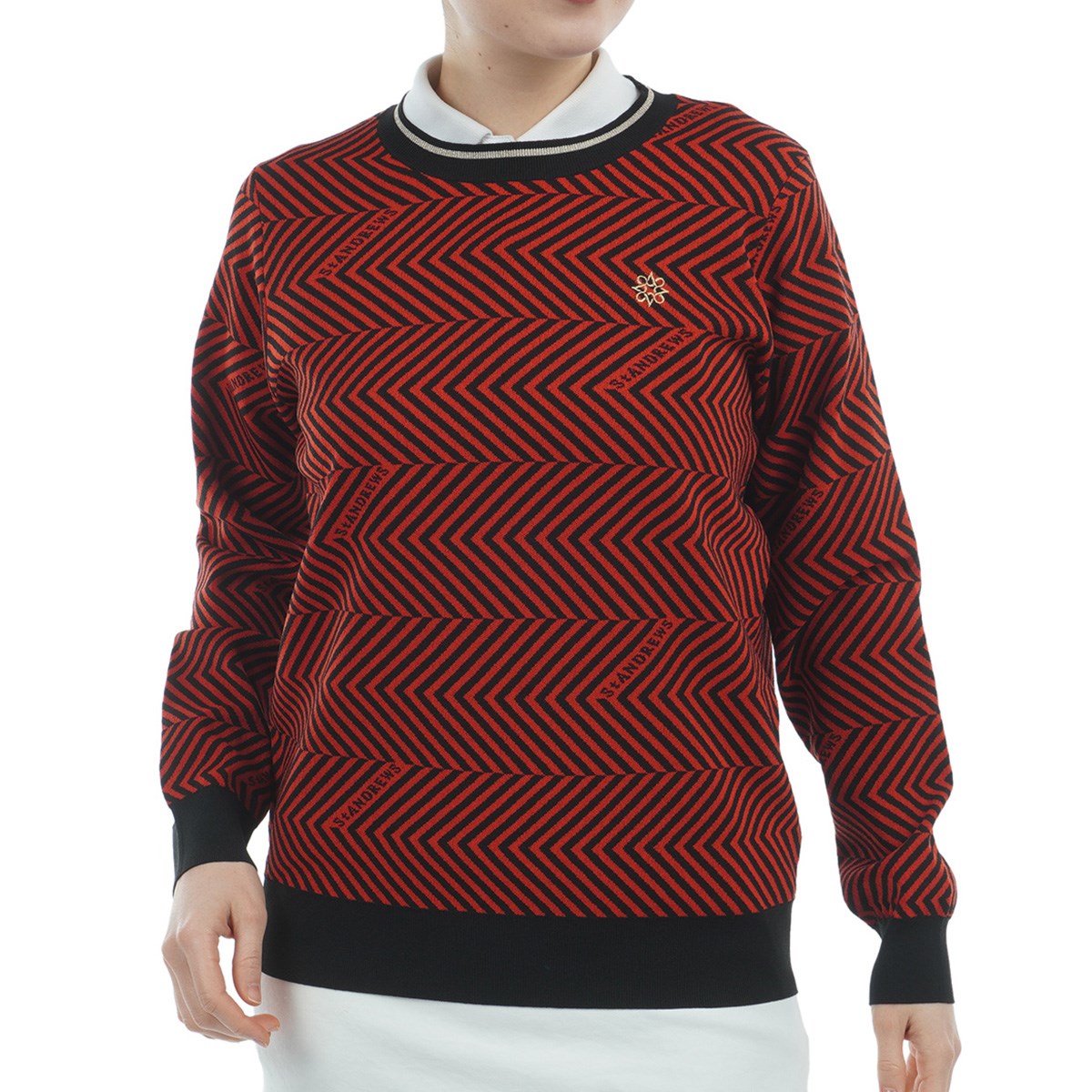 セント・アンドリュース St ANDREWS ジグザグ柄 ダブルジャカード プルオーバーセーター S ホワイト 030 レディス