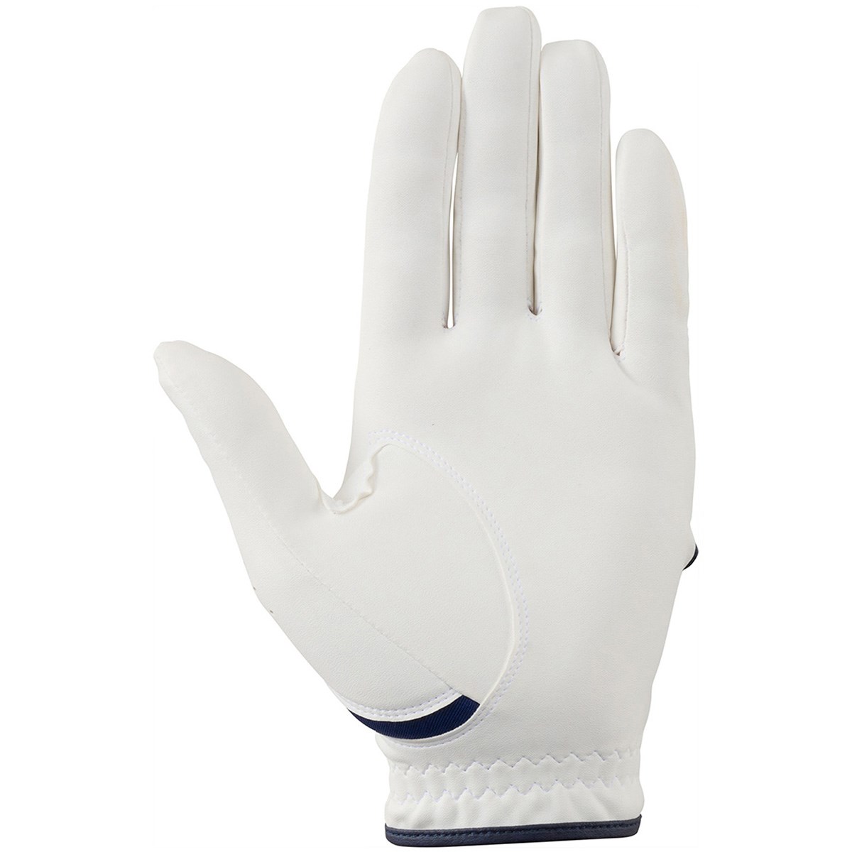 手甲部分には馴染みやすい合成皮革を採用し、手の平部分にはクラブのグリップにフィットする合成皮革を採用したスポーティデザインの男性用グローブ。