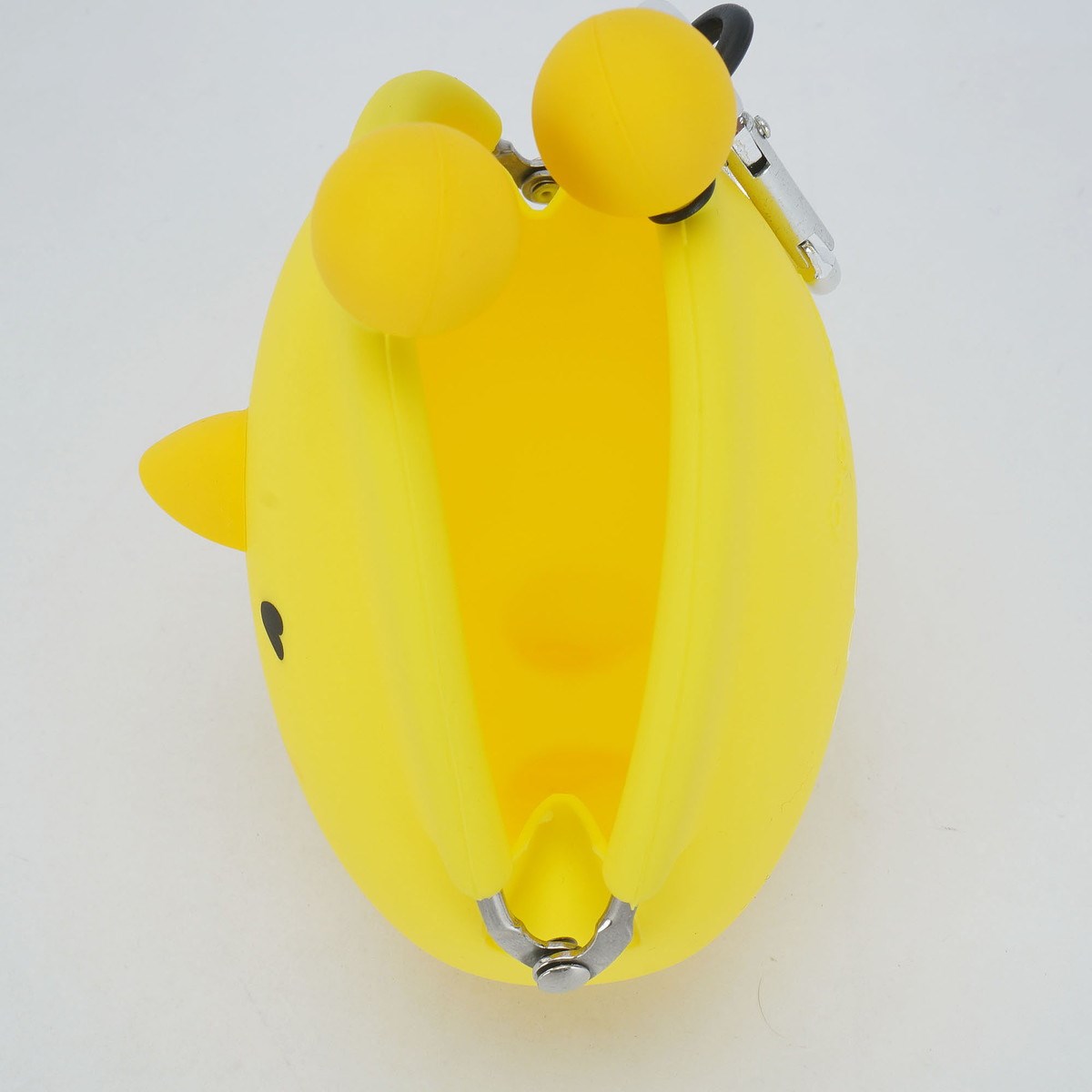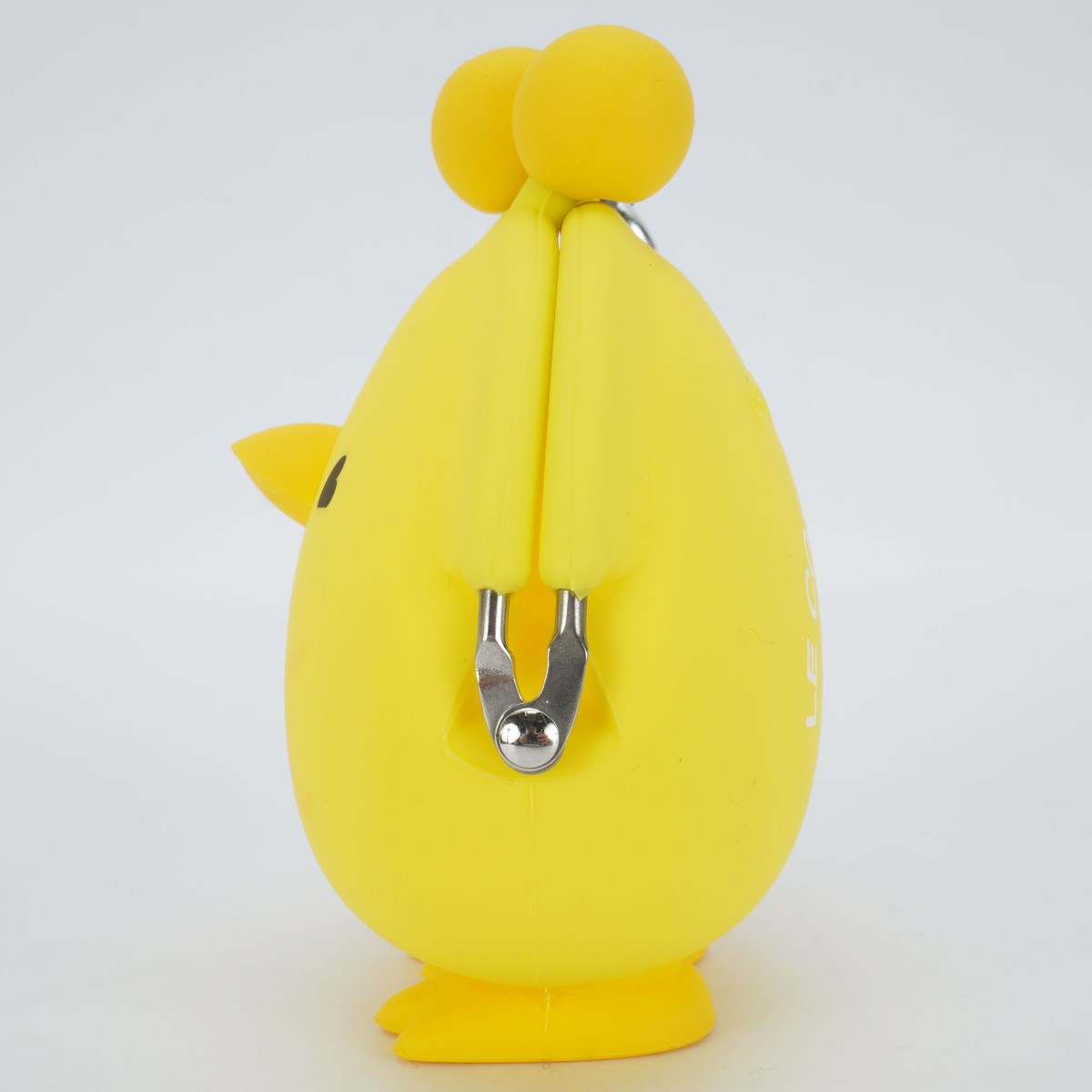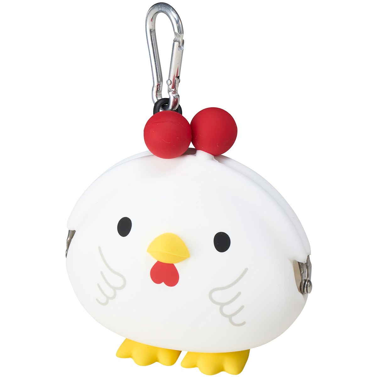 ルコックスポルティフのキャラクターであるニワトリと、そのひなであるヒヨコをモチーフにしたキャラクターが可愛い、がま口タイプのシリコーンポーチ。