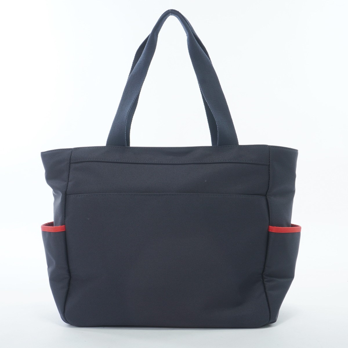 ポリエステル素材を採用し、ボリューム感のあるサイズ感と、パーツのカラー配色が利いているトートボストンバッグです。