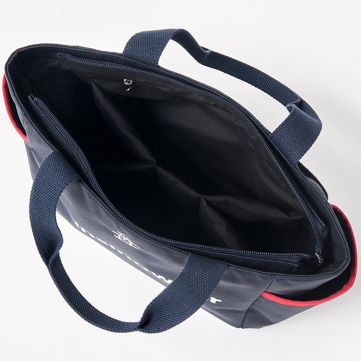 ポリエステル素材を採用し、ボリューム感のあるサイズ感と、パーツのカラー配色が利いているカートバッグです。