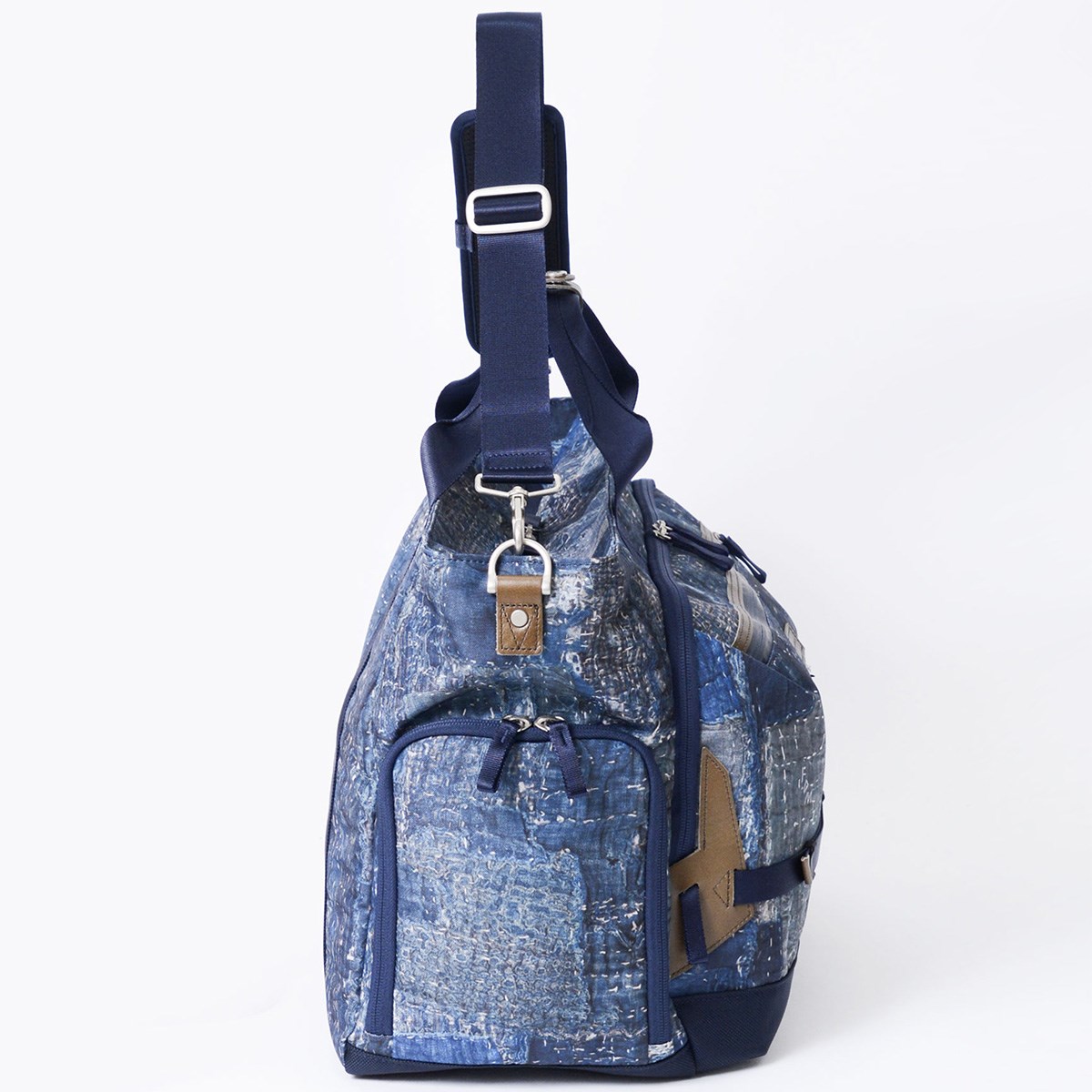 本体素材は600dのポリエステル糸を高密度に織ったオックスに、エイジングインディゴデニム柄、日本の伝統的な刺し子デザインやボロパッチワークといったFDMTL(ファンダメンタル)の美学を備えたテクニカル生地で構築したオリジナルの柄を、昇華転写プリントで表現しています。