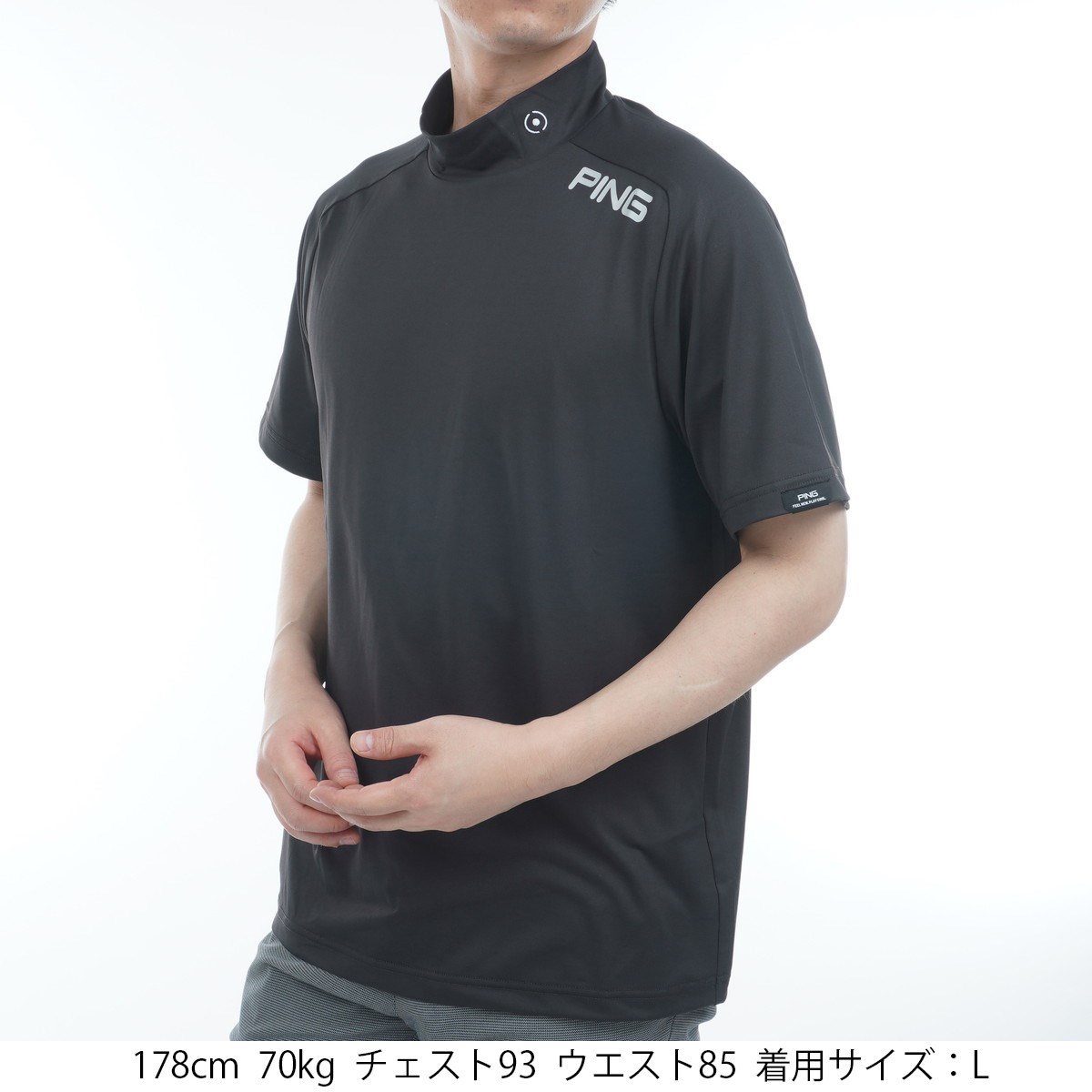 ピン PING メッシュパネルジャカード半袖ハイネックシャツ LL ブラック 010