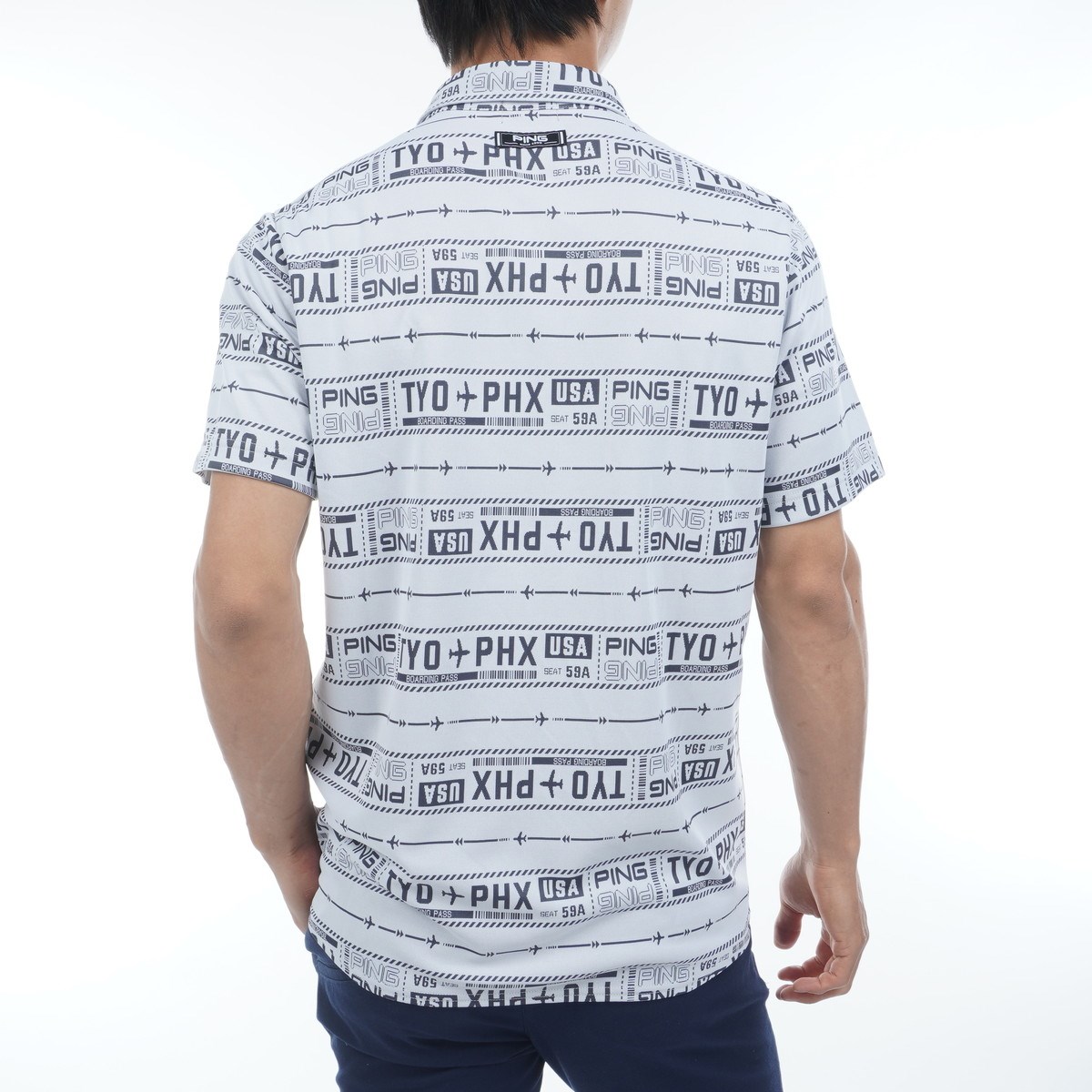 ピン PING チケット柄 ジャカード 半袖ポロシャツ LL ホワイト/ネイビー 031