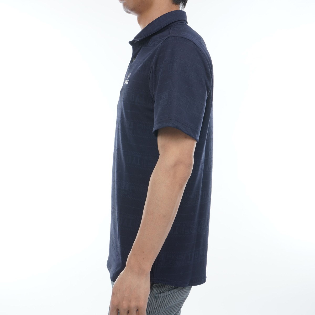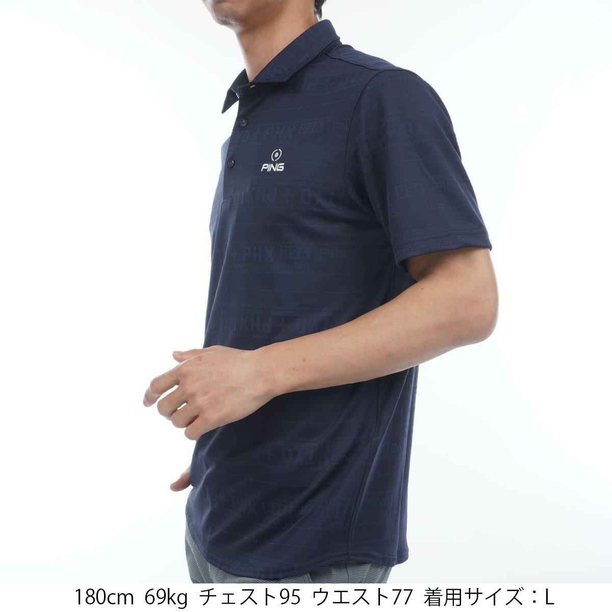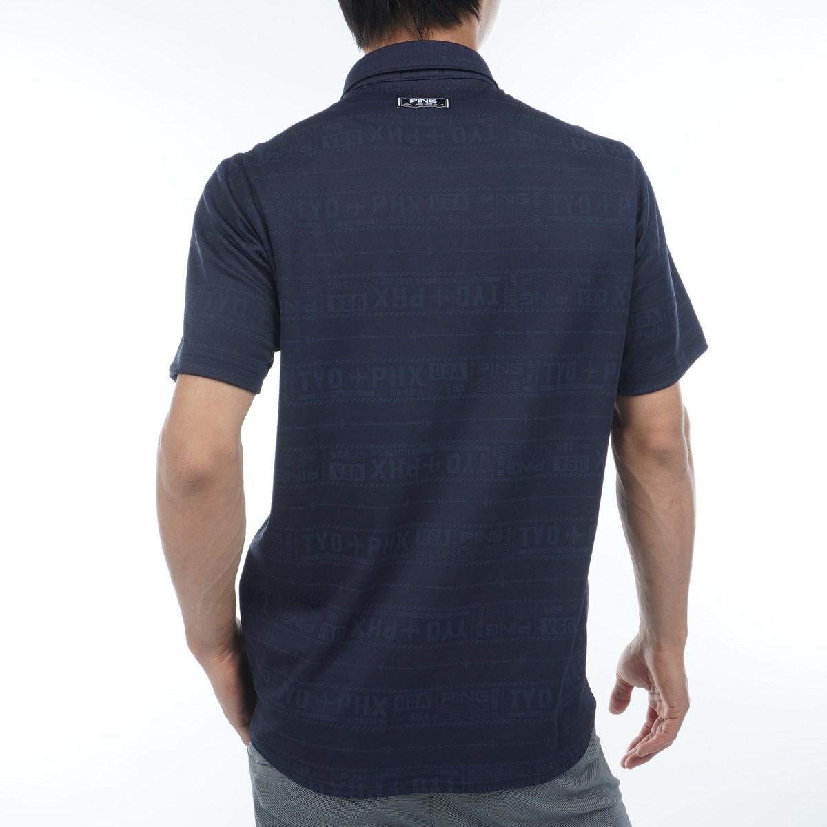 ピン PING チケット柄 ジャカード 半袖ポロシャツ L ネイビー 120