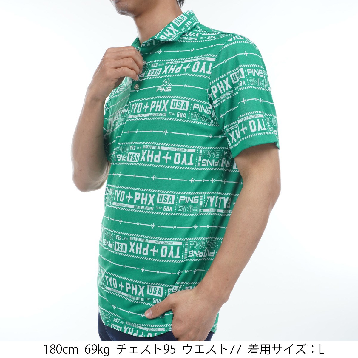 ピン PING チケット柄 ジャカード 半袖ポロシャツ LL グリーン 140