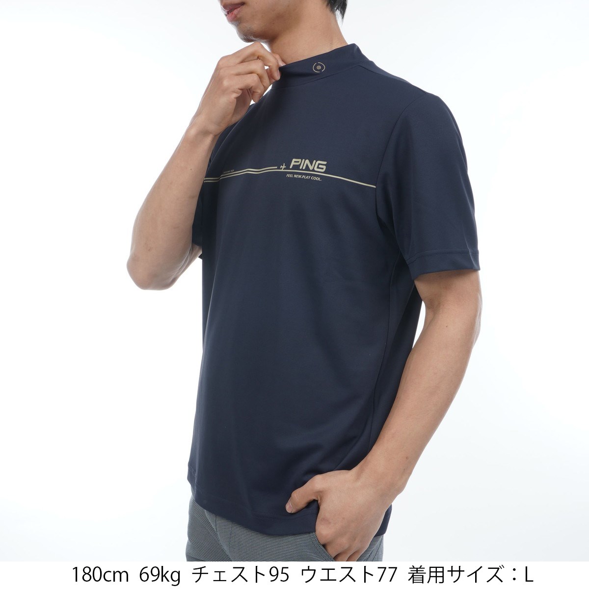 ピン PING サンベール 鹿の子 半袖ハイネックシャツ L ネイビー 120