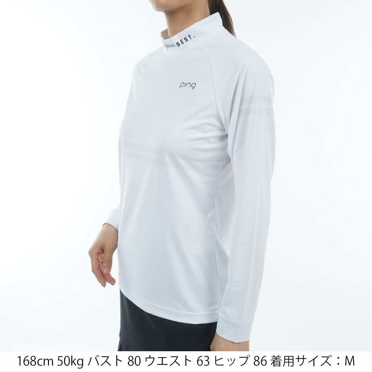ピン PING メッシュボーダー ジャカード長袖ハイネックシャツ L ホワイト 030 レディス