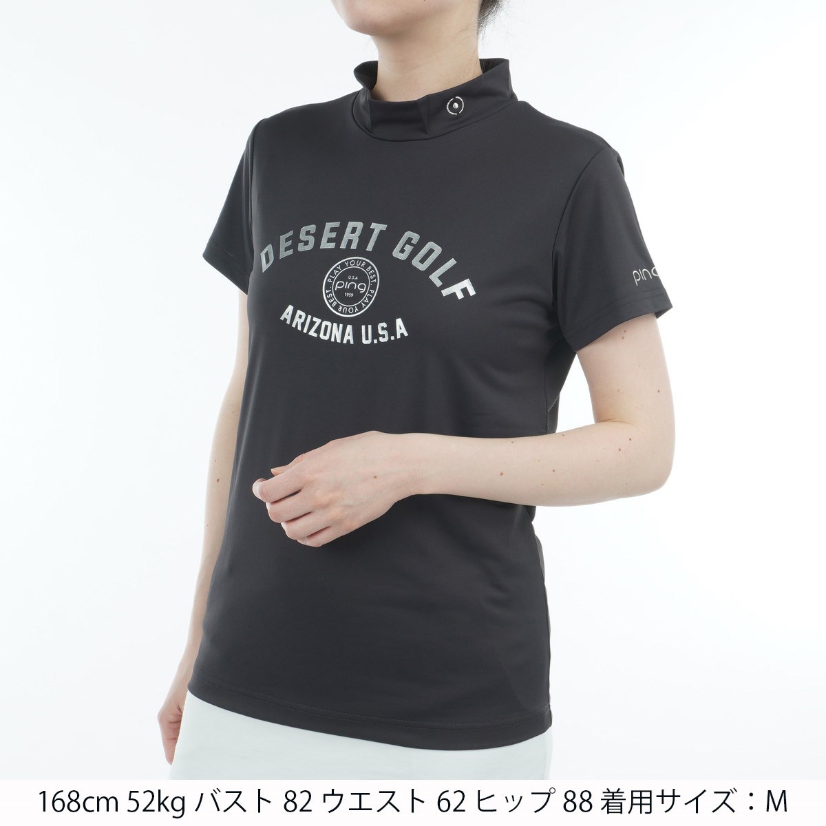 ピン PING メッシュボーダー ジャカード半袖ハイネックシャツ LL ブラック 010 レディス