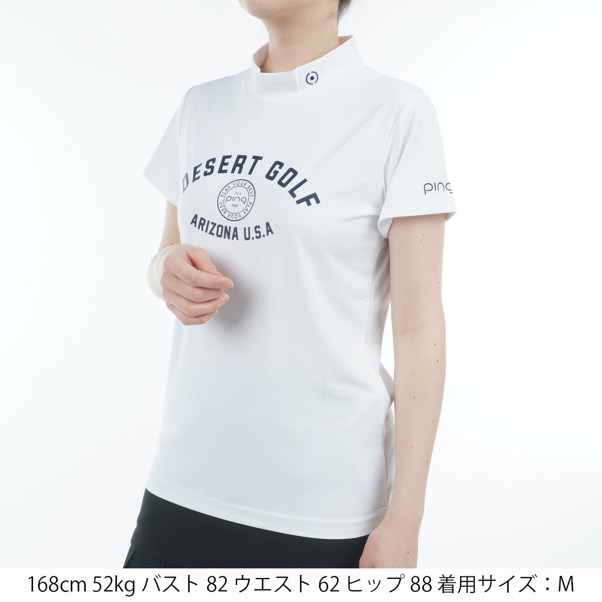 ピン PING メッシュボーダー ジャカード半袖ハイネックシャツ L ホワイト 030 レディス