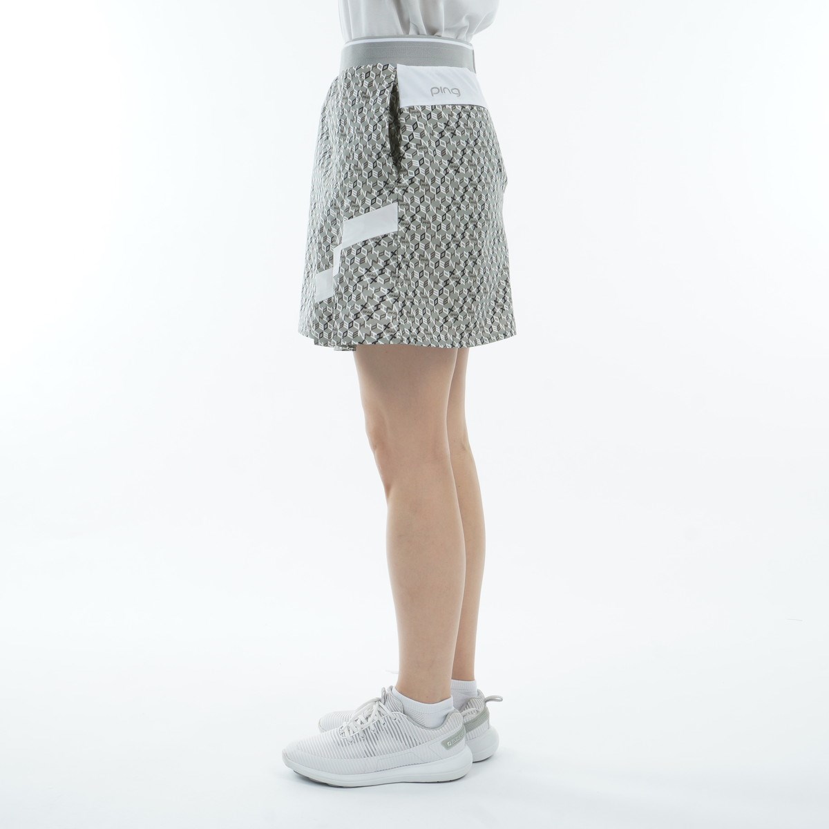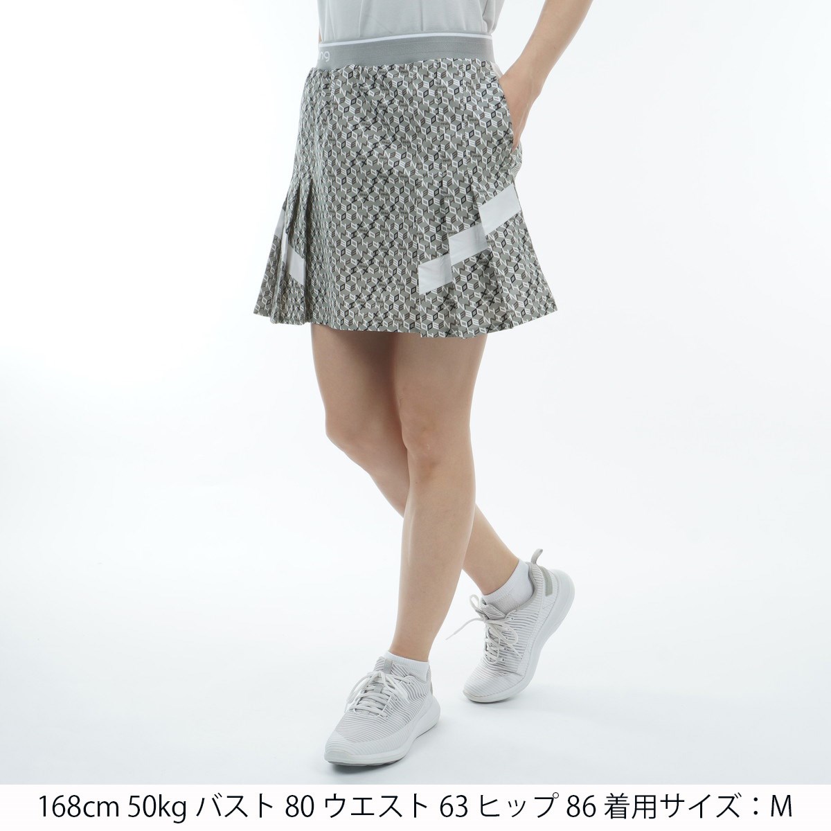 ピン PING 総柄プリント プリーツスカート M グレー 020 レディス
