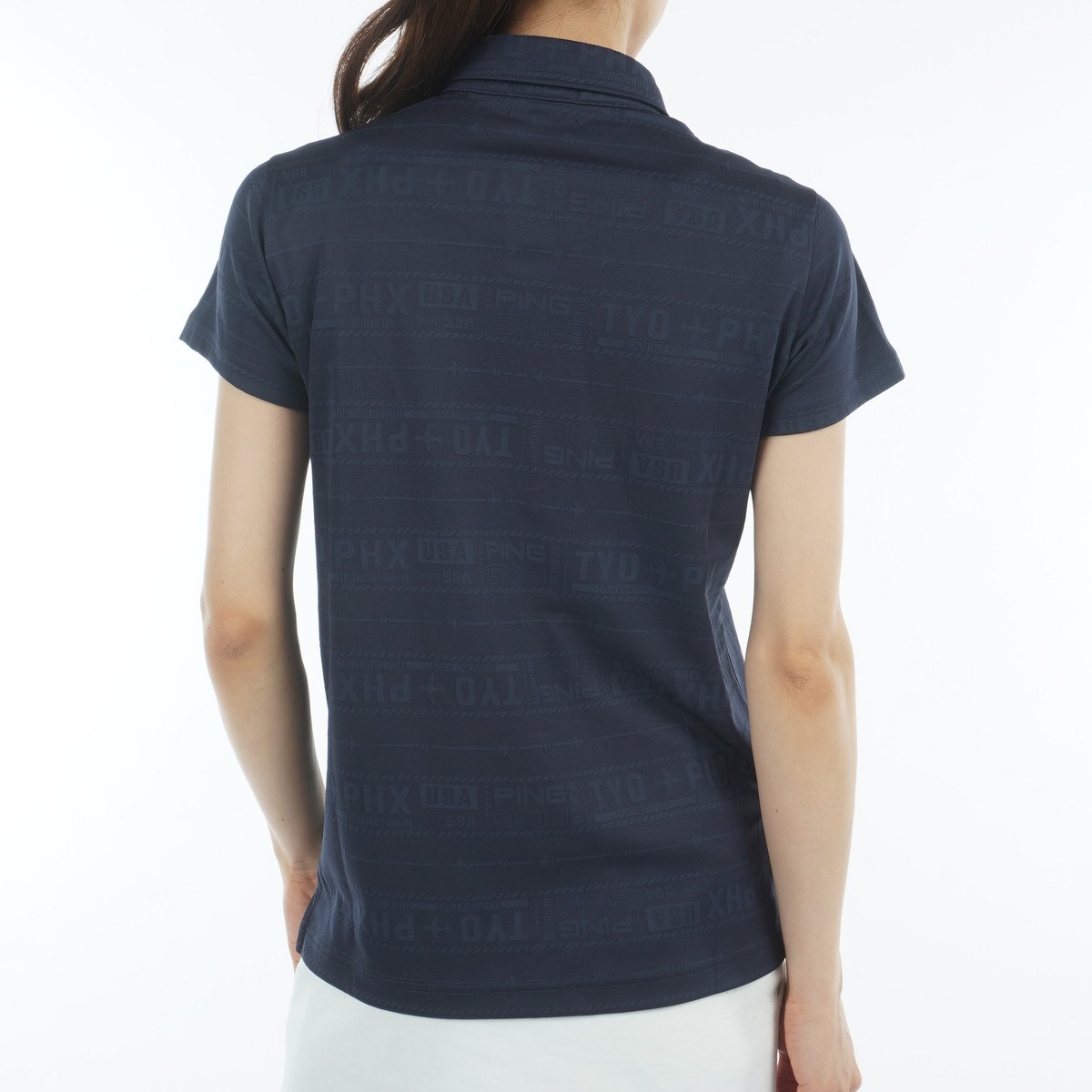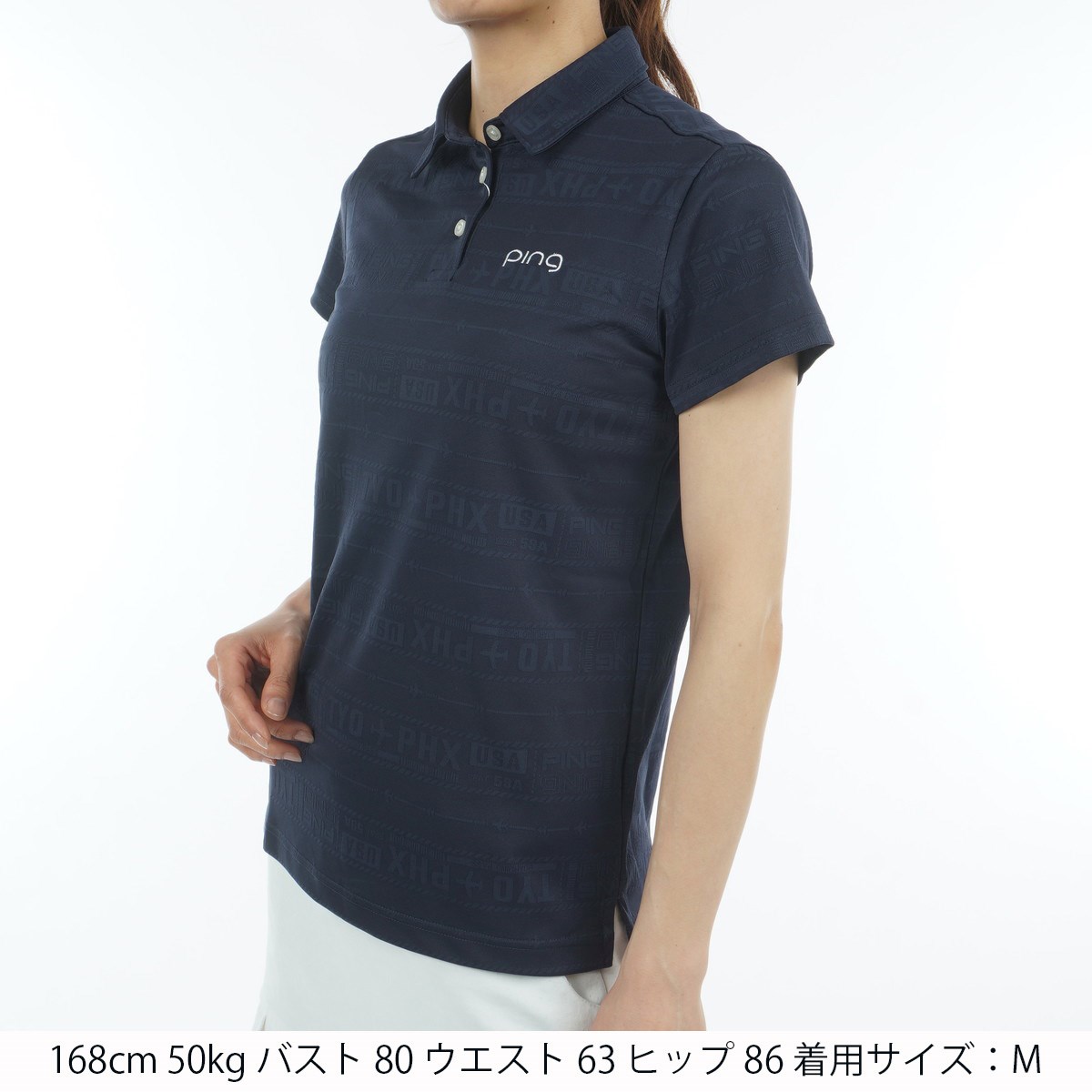 ピン PING チケット柄 ジャカード半袖ポロシャツ M ネイビー 120 レディス