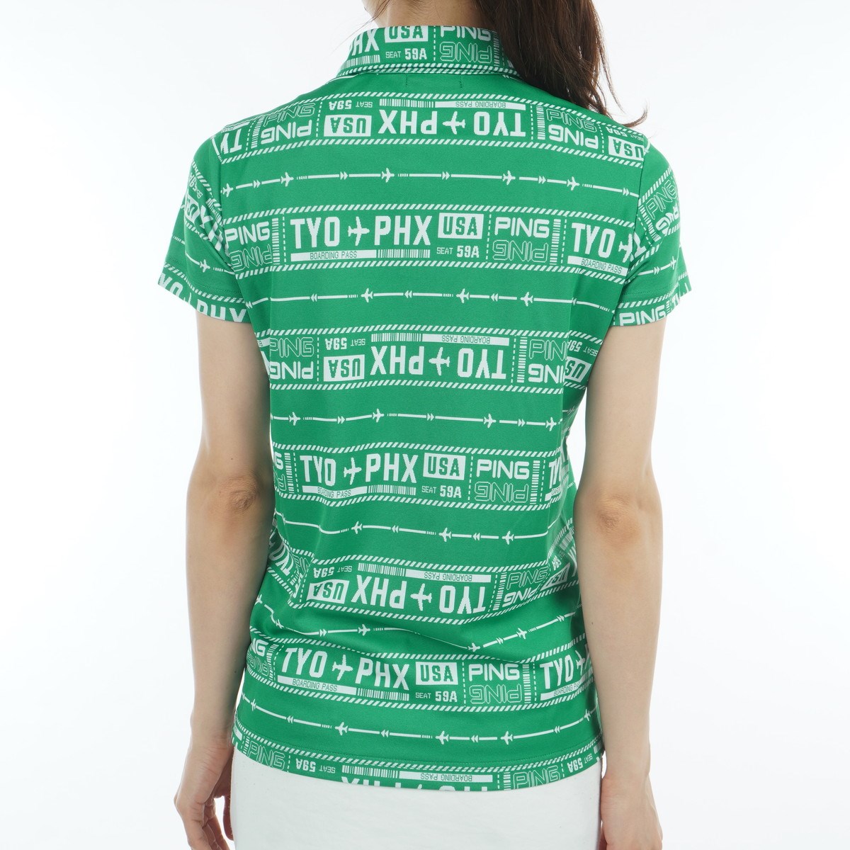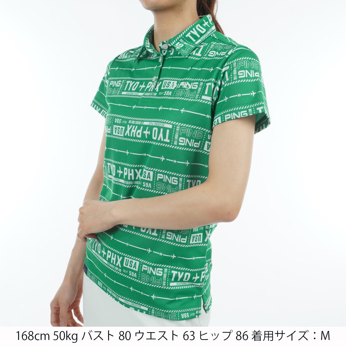 ピン PING チケット柄 ジャカード半袖ポロシャツ M グリーン 140 レディス