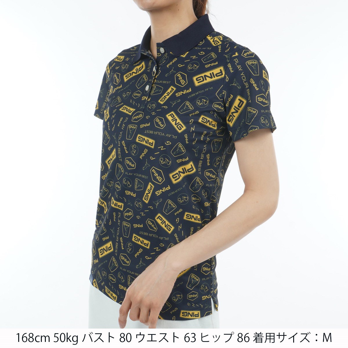 ピン PING 総柄プリント半袖ポロシャツ M ネイビー/イエロー 121 レディス