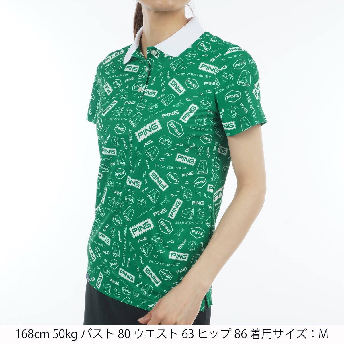 ピン PING 総柄プリント半袖ポロシャツ M グリーン/ホワイト 140 レディス