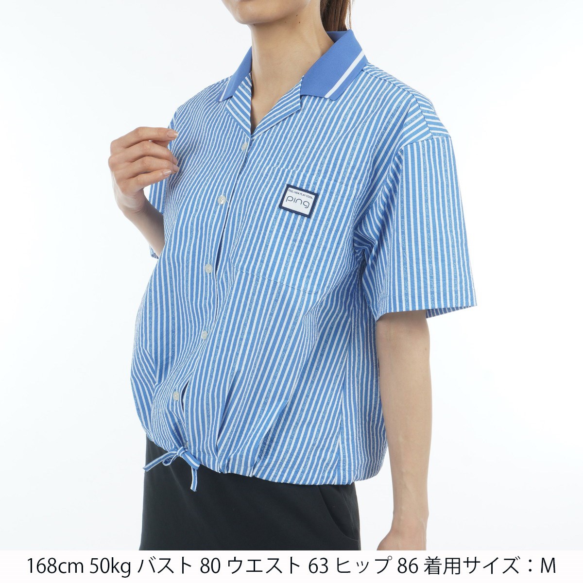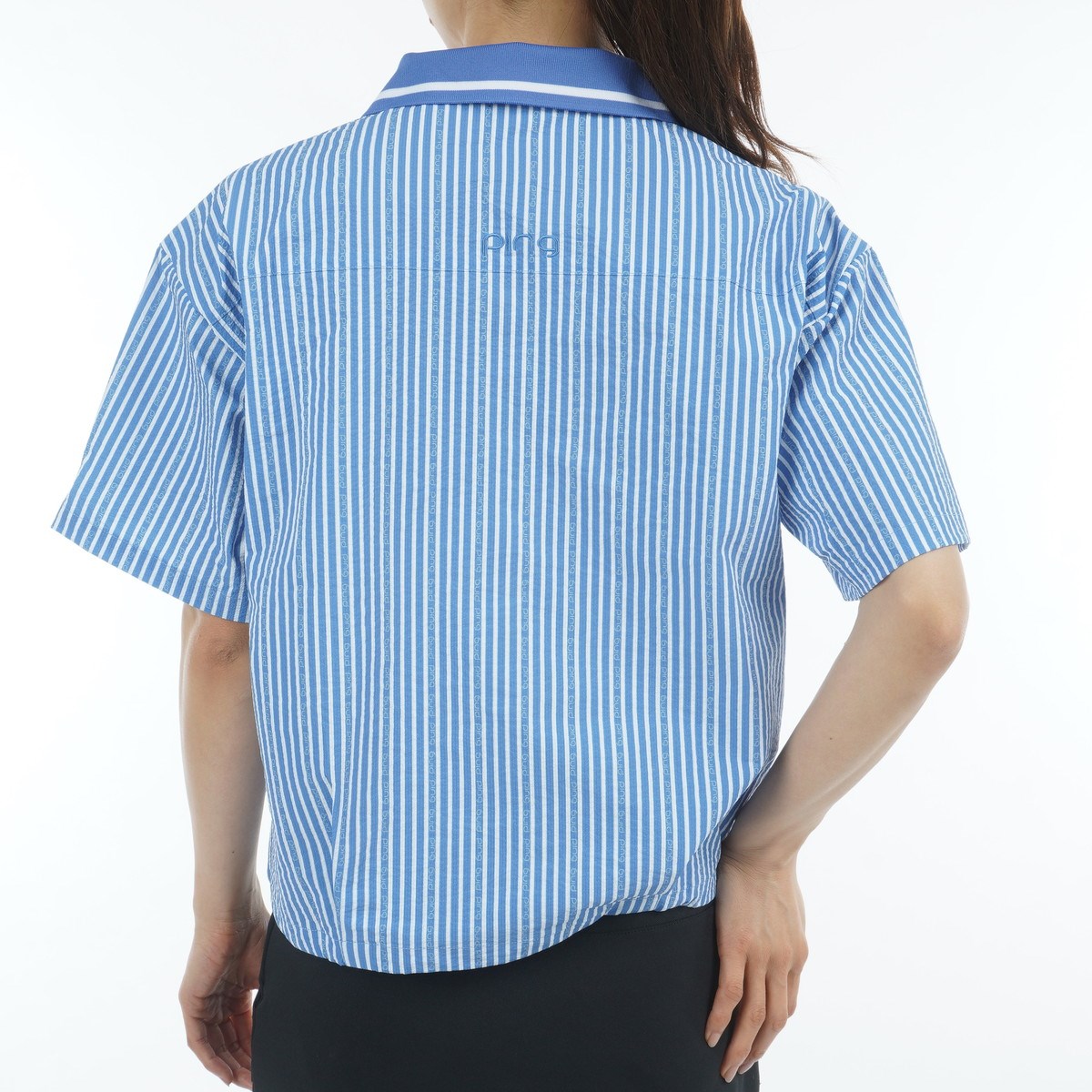 ピン PING シアサッカー半袖シャツ L ブルー 110 レディス