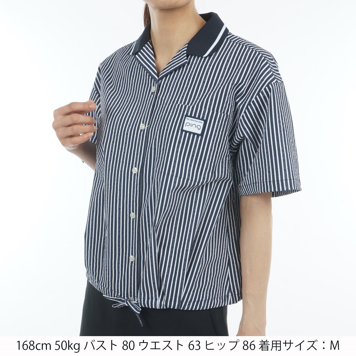 ピン PING シアサッカー半袖シャツ L ネイビー 120 レディス