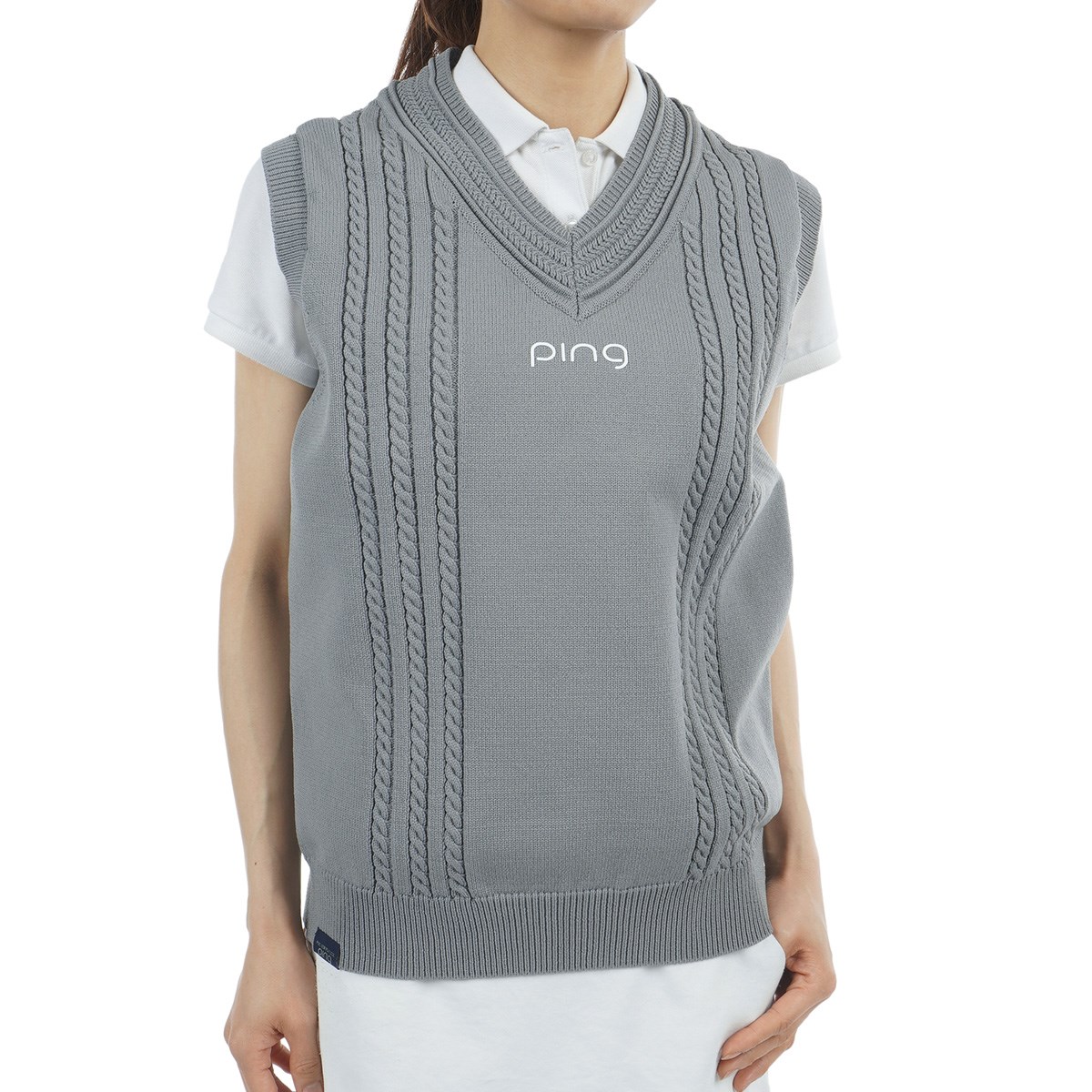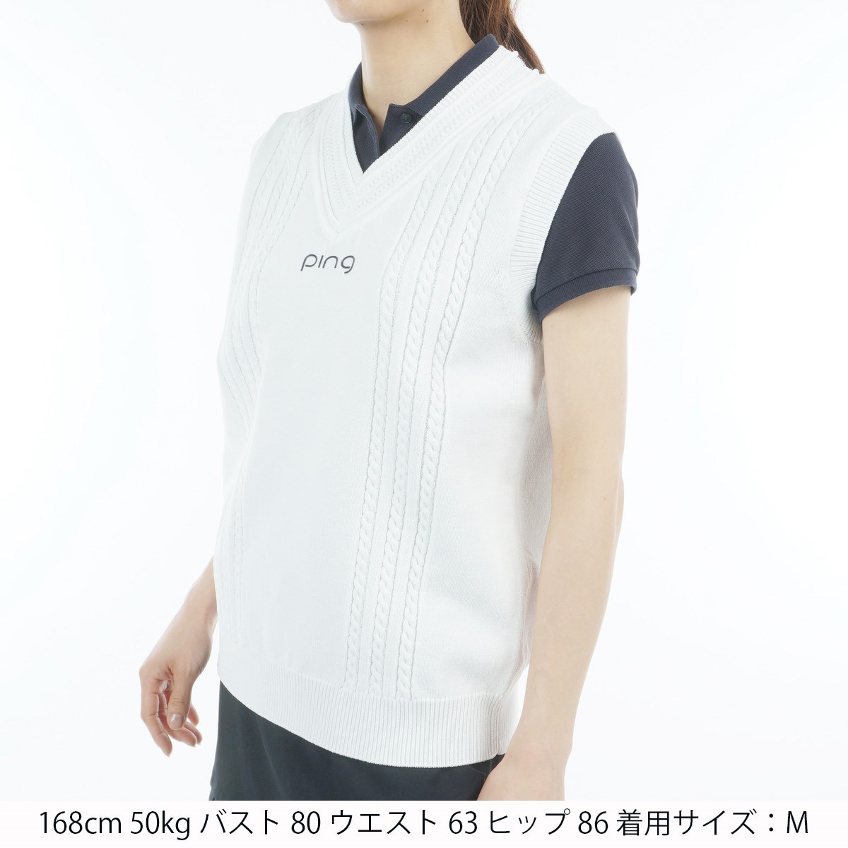 ピン PING ケーブルニットベスト L ホワイト 030 レディス