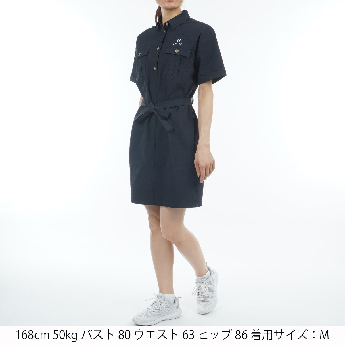 ピン PING シアサッカーワンピース M ネイビー 120 レディス