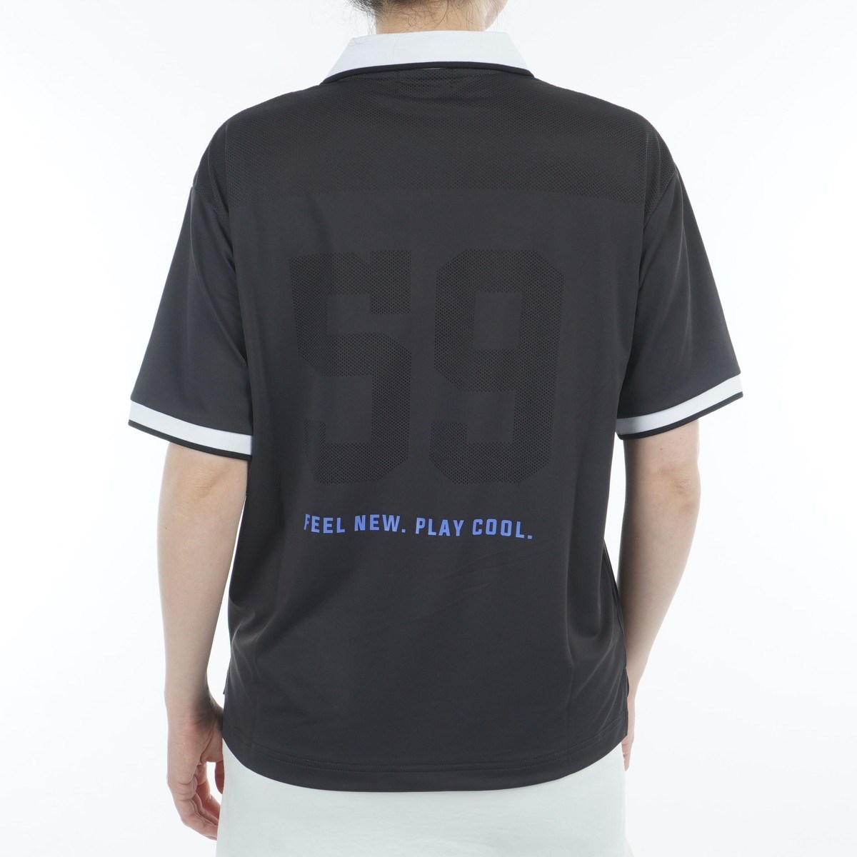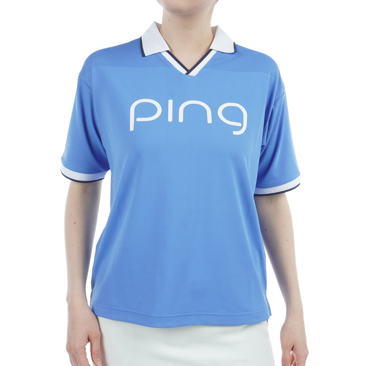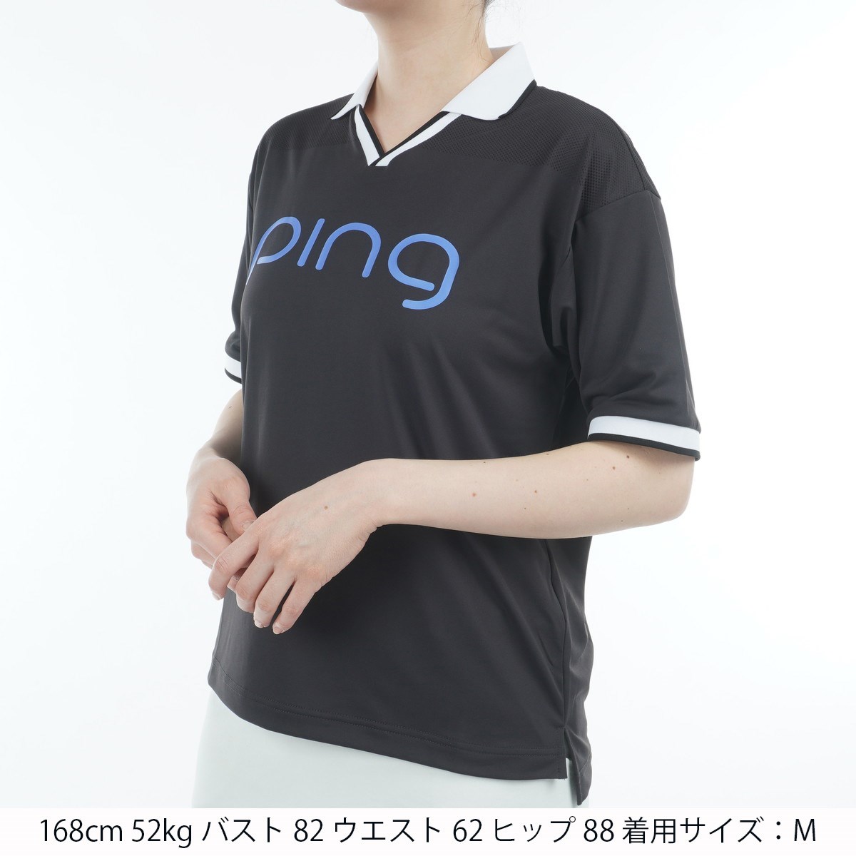 ピン PING メッシュパネル ジャカード半袖シャツ M ブラック 010 レディス