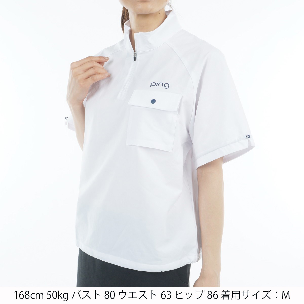 ピン PING 二重織ハーフジップ ハイネック半袖シャツ S ホワイト 030 レディス