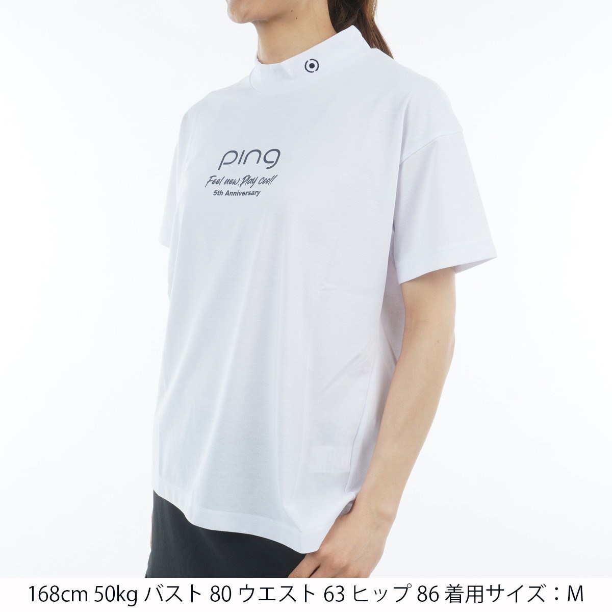 ピン PING プレーティング天竺 ハイネック半袖シャツ L ホワイト 030 レディス