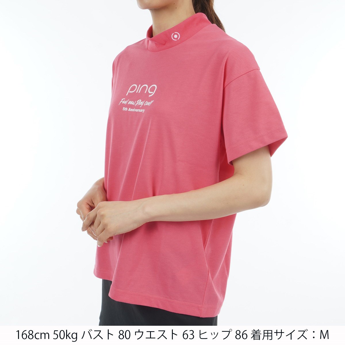 ピン PING プレーティング天竺 ハイネック半袖シャツ S ピンク 090 レディス