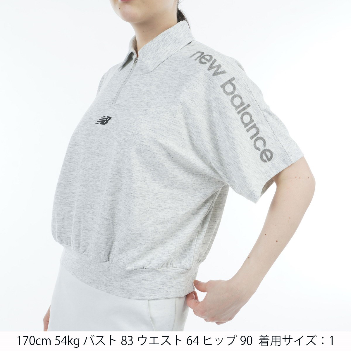 ニューバランス New Balance ハーフジップビッグ共衿ポロシャツ 3 ホワイト/グレー レディス