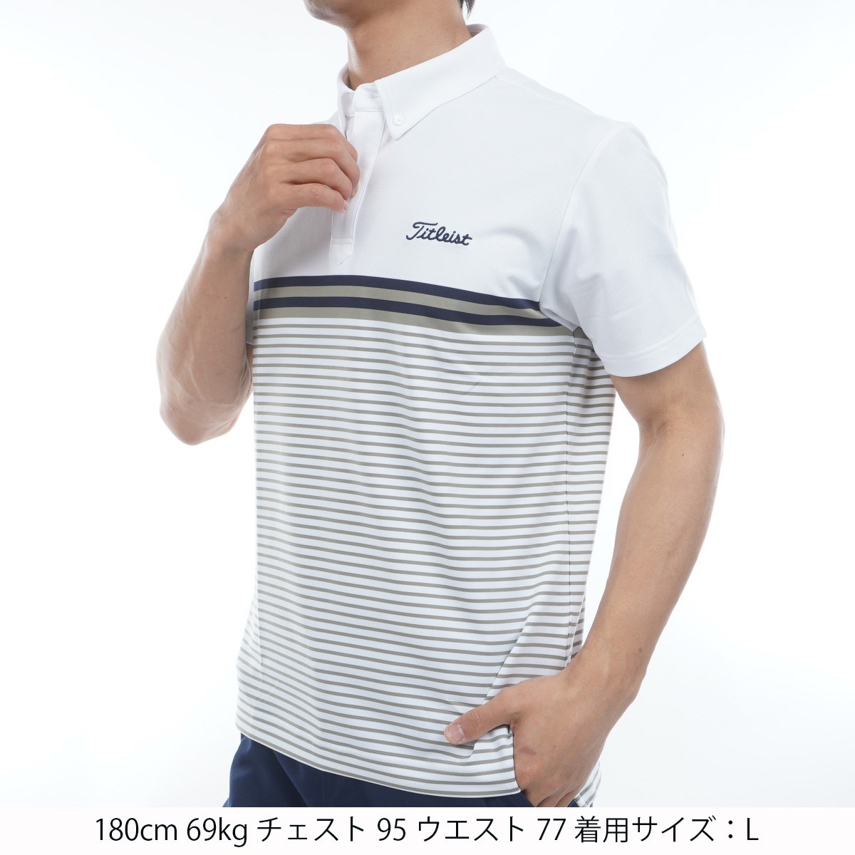 タイトリスト TITLEIST ストレッチ パネルストライプ先染め半袖ポロシャツ S ホワイト/カーキ 84