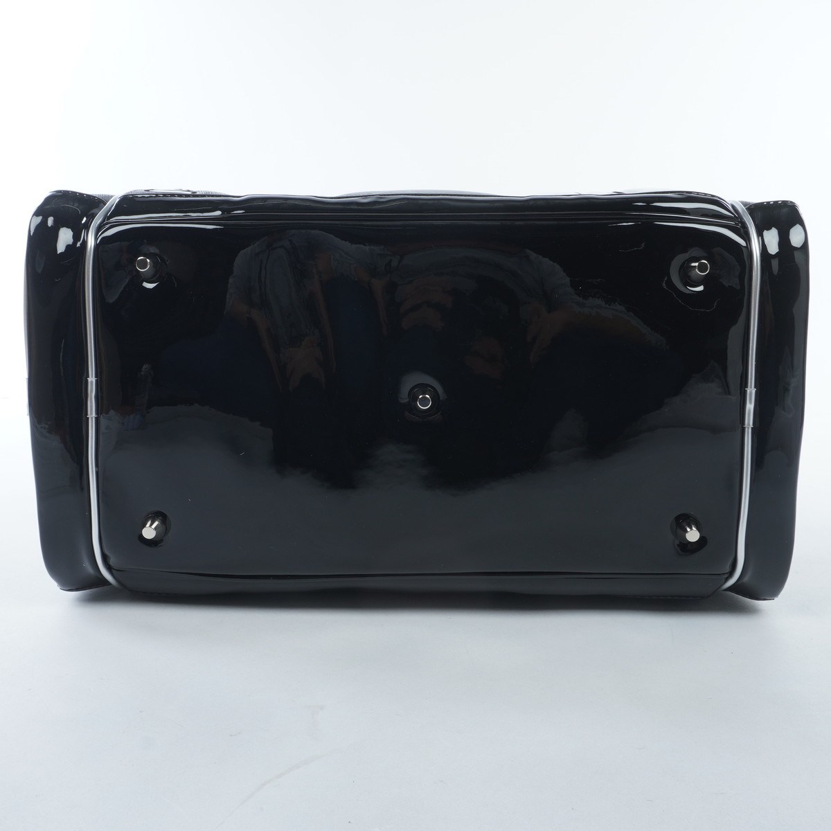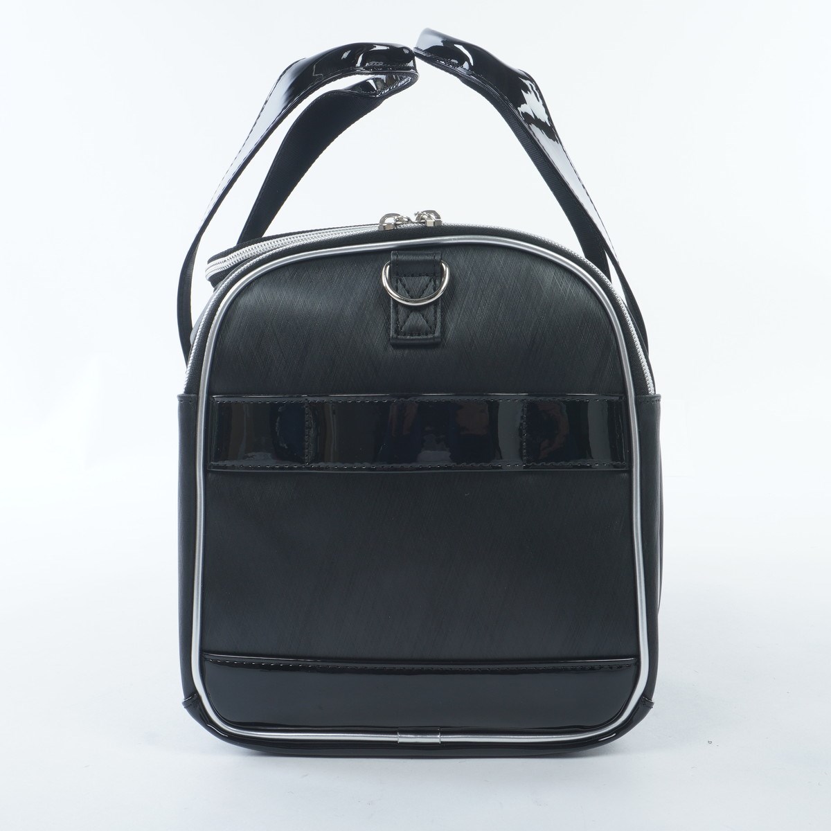 クロスヘアラインの合皮とエナメルを使用したボストンバッグ。