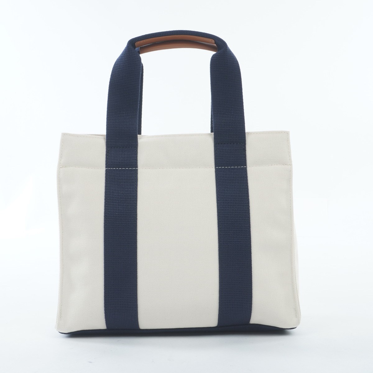 カジュアルな帆布調の生地を使用したラウンドバッグです。