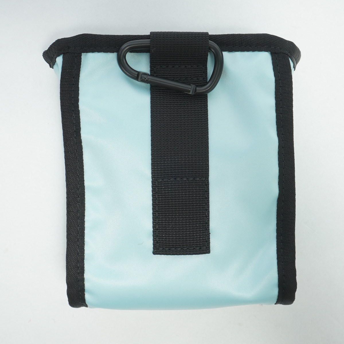 ノールックで物を出し入れでき、ベルトループとカラビナが付いているので取り付ける場所は自由。