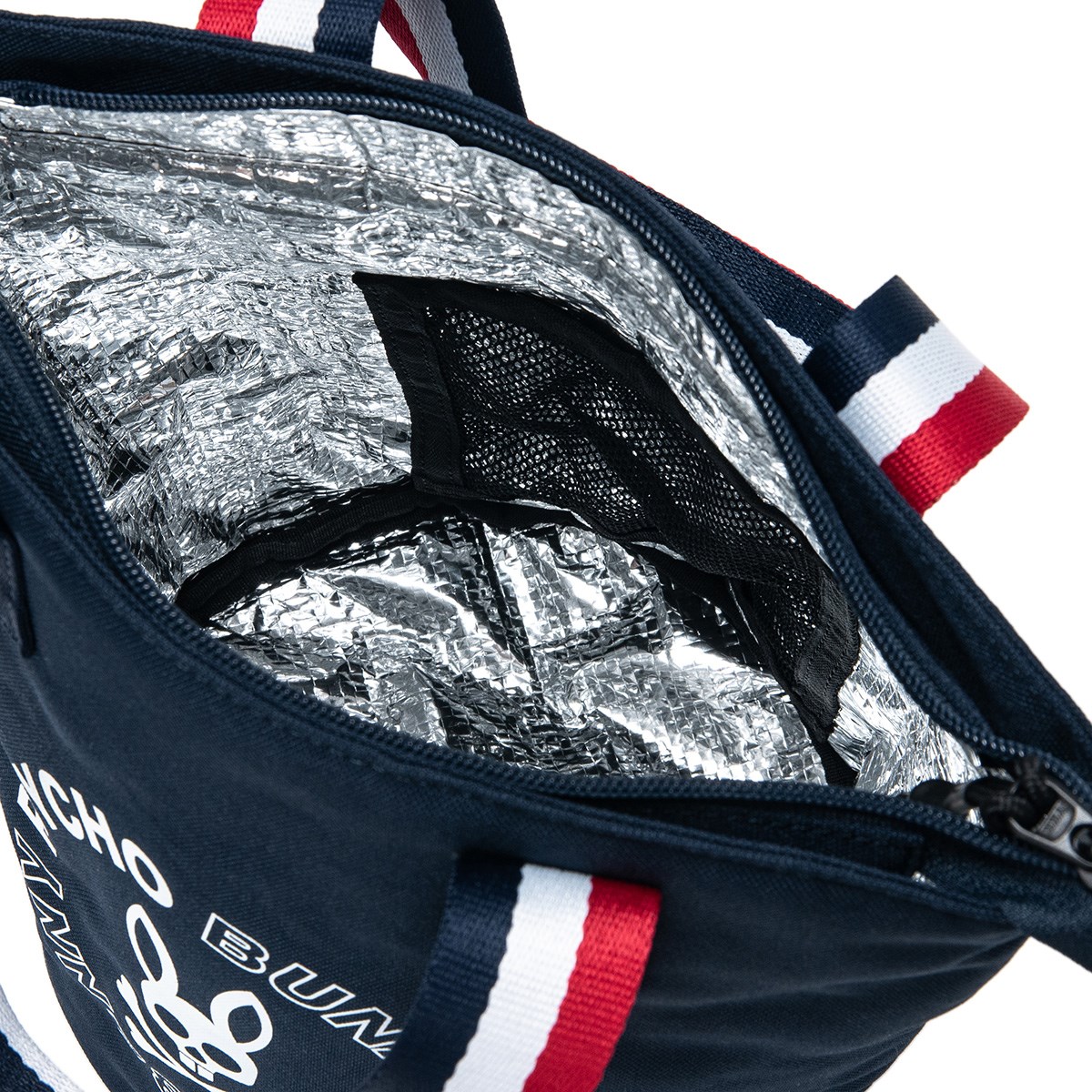 内側には保冷剤を入れられるメッシュポケットが付いており、飲み物や食品を長時間冷たく保つことができます。