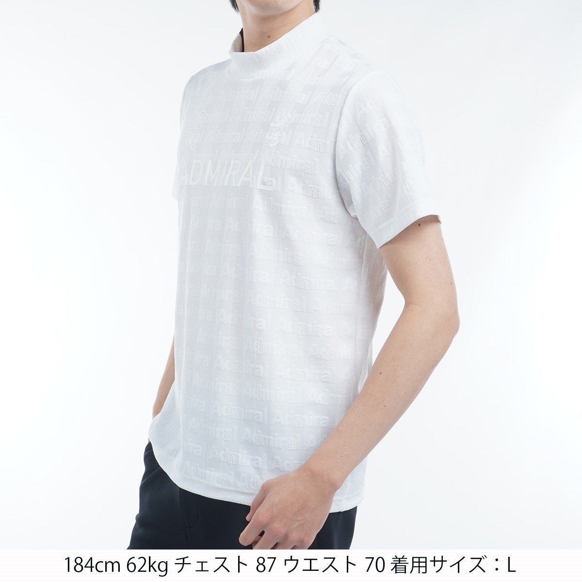 アドミラル Admiral ストレッチ ストライプジャカード モックネック半袖シャツ M ホワイト
