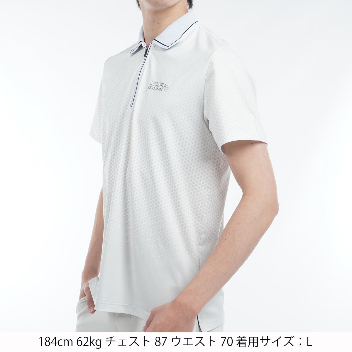アドミラル Admiral ストレッチ ドットグラデーション ハーフジップ半袖ポロシャツ LL ホワイト
