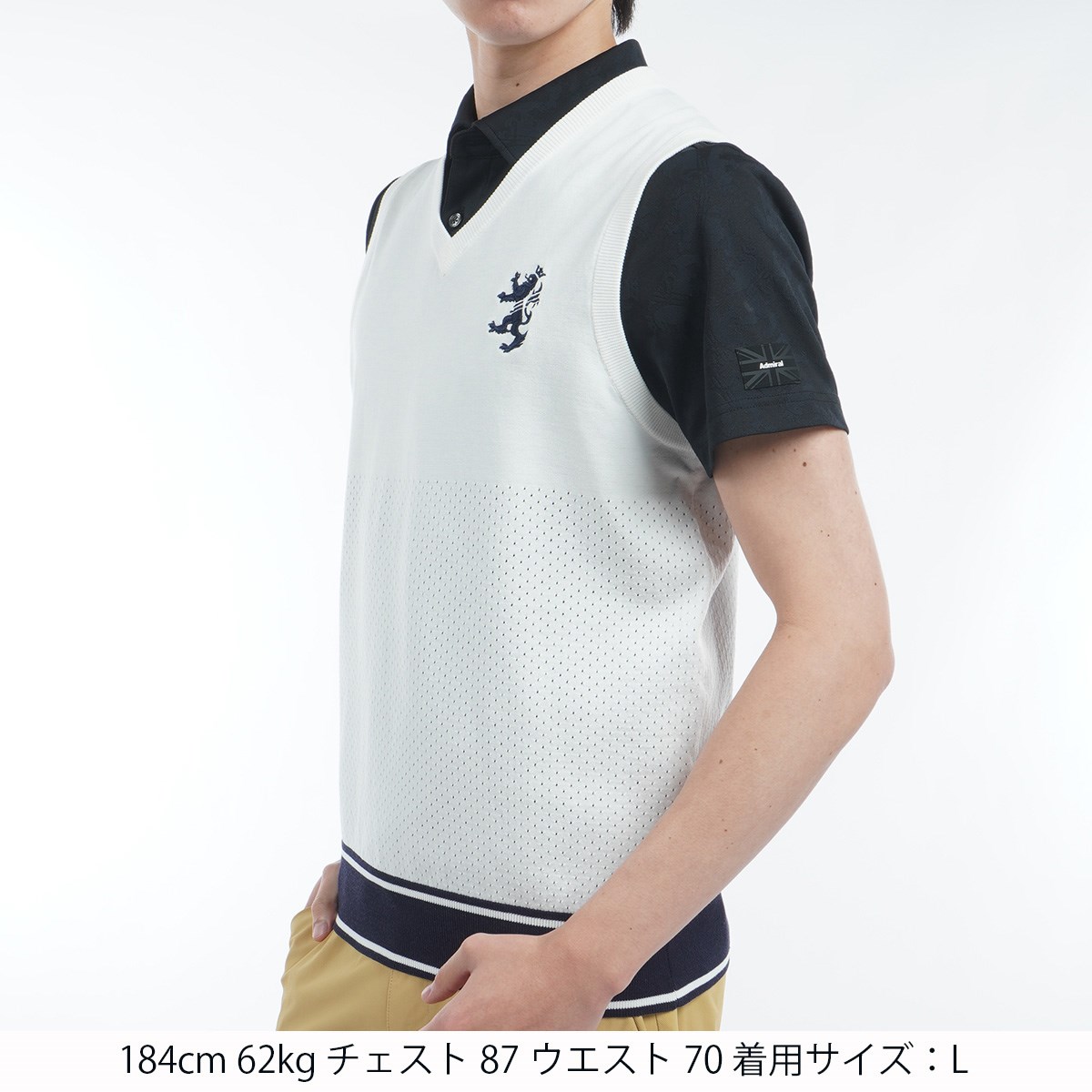 ポリエステル糸を使用した軽量で、春先のゴルフに最適なニットベスト。