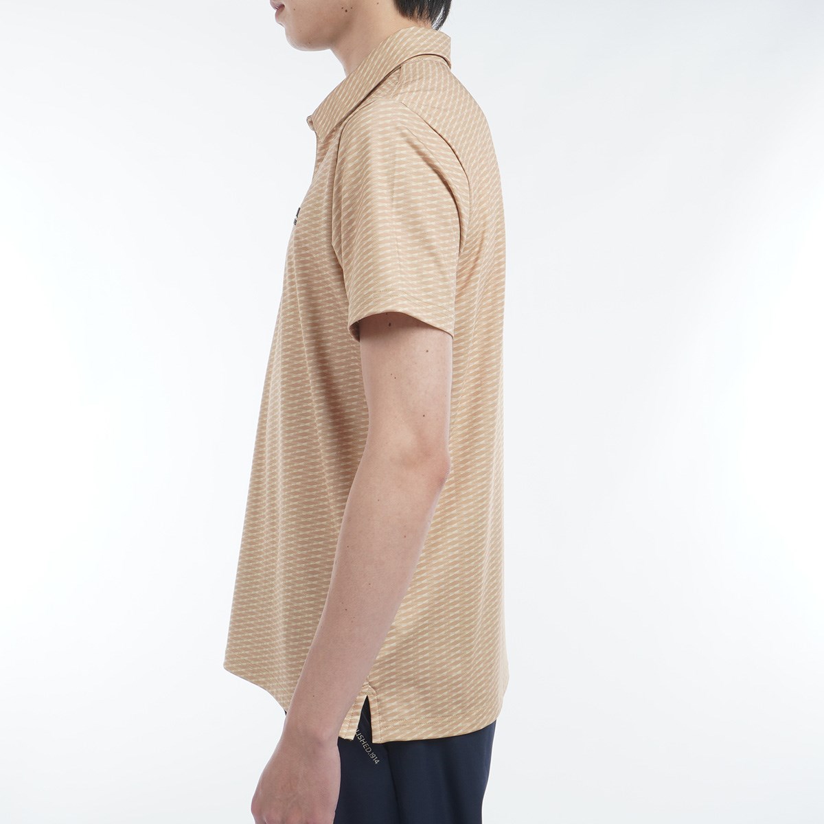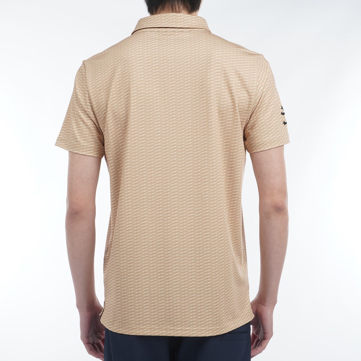 吸水速乾性、UVカット機能、ストレッチ性に優れたポリエステル天竺素材を使用した、プリント半袖ポロシャツ。