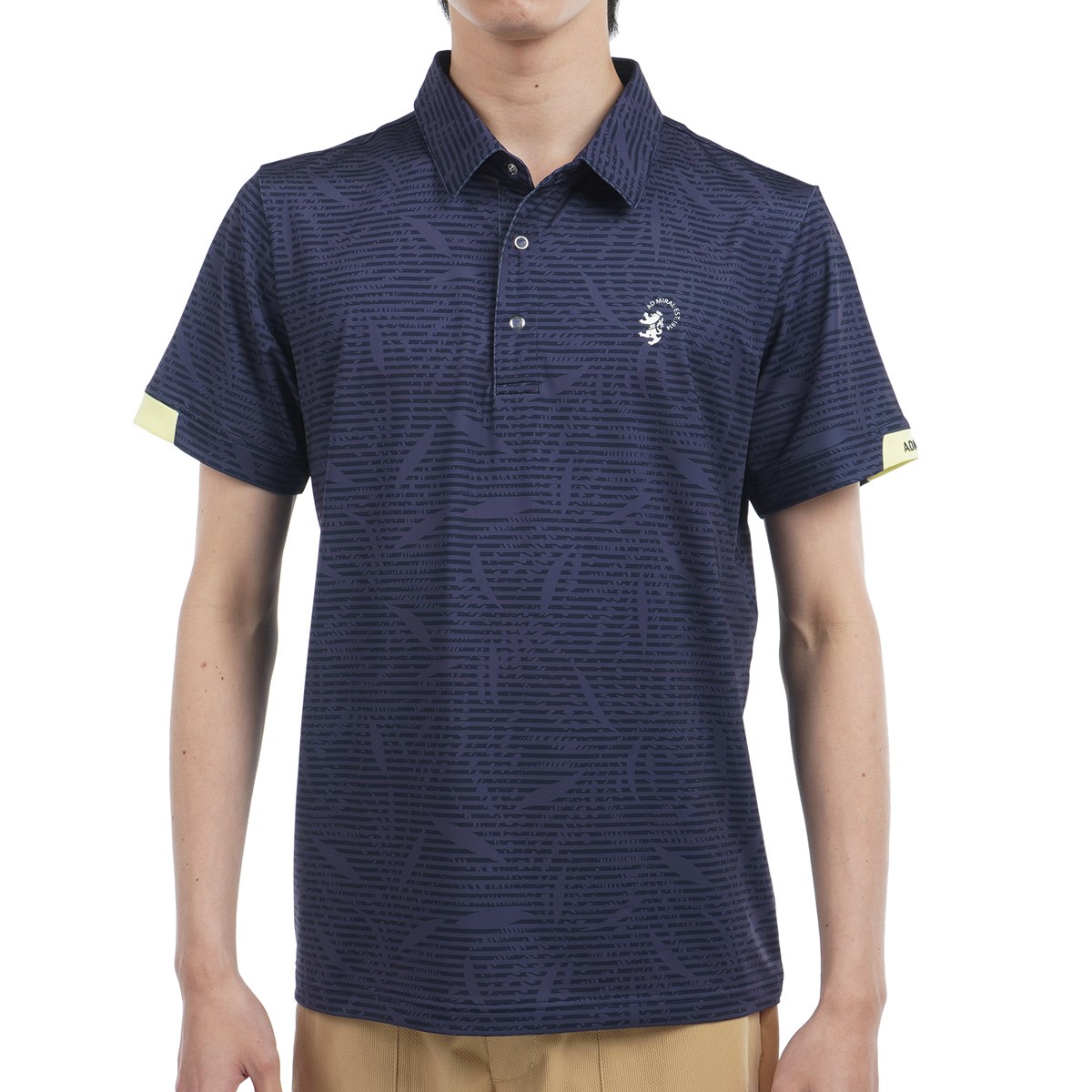 吸水速乾性とUVカット機能を兼ね備えたポリエステル天竺素材を使用した、シャドーリゾート プリント半袖ポロシャツ。